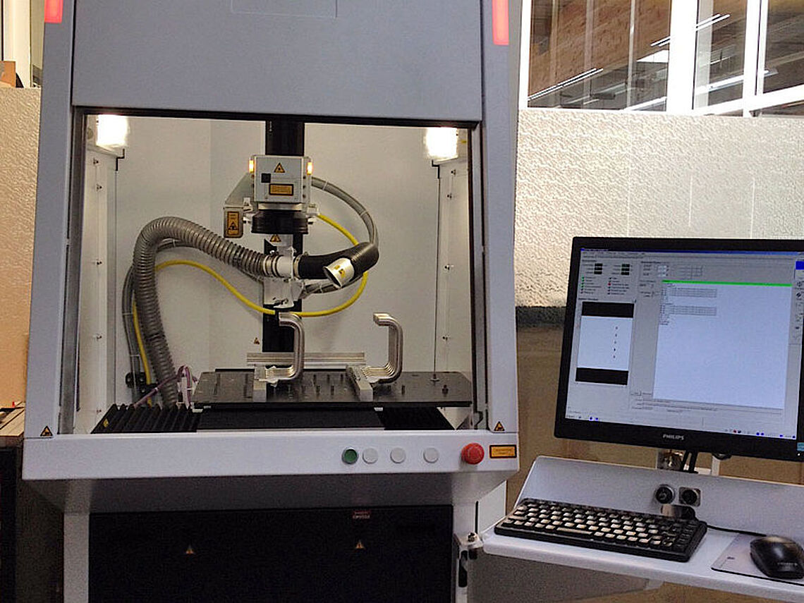 Die Spezialität der Faserlaser TruMark 5020 sind besonders hohe Pulsfrequenzen – ein Schlüsselfaktor für hohe Bearbeitungsgeschwindigkeiten. Eine weitere Voraussetzung für einen beschleunigten Markiervorgang sind die serienmäßig eingebauten hochdynamischen Scannermodule. Dank der softwaregesteuerten Fokuslagenanpassung können stufige Bauteile in einem Arbeitsgang beschriftet werden, ohne mechanisch bewegt werden zu müssen. Die Pulsdauer der Serie 5000 kann man dank MOFPA-Technologie (Master Oscillator Fiber Power Amplifier) optimal an eine Anwendung anpassen. Zwischen Frequenz und Pulsdauer gibt es dabei keine Abhängigkeit. So lassen sich auch wärmesensitive Bauteile (z,B. Kunststoff) ideal beschriften. Eine weitere Option zu den Beschriftungslasern der Metallabteilung ist der verfahrbare Arbeitstisch in der Maschine, welcher hierbei weitere Einsatzmöglichkeiten eröffnet und den bisherigen Kundenanfragen, sowie unseren proviel/forum Anspruch interessante Arbeitsplätze anbieten zu wollen, für die Zukunft entgegen kommt.