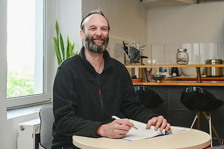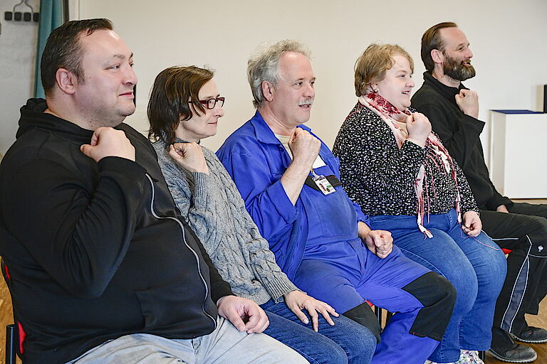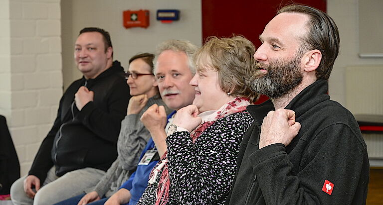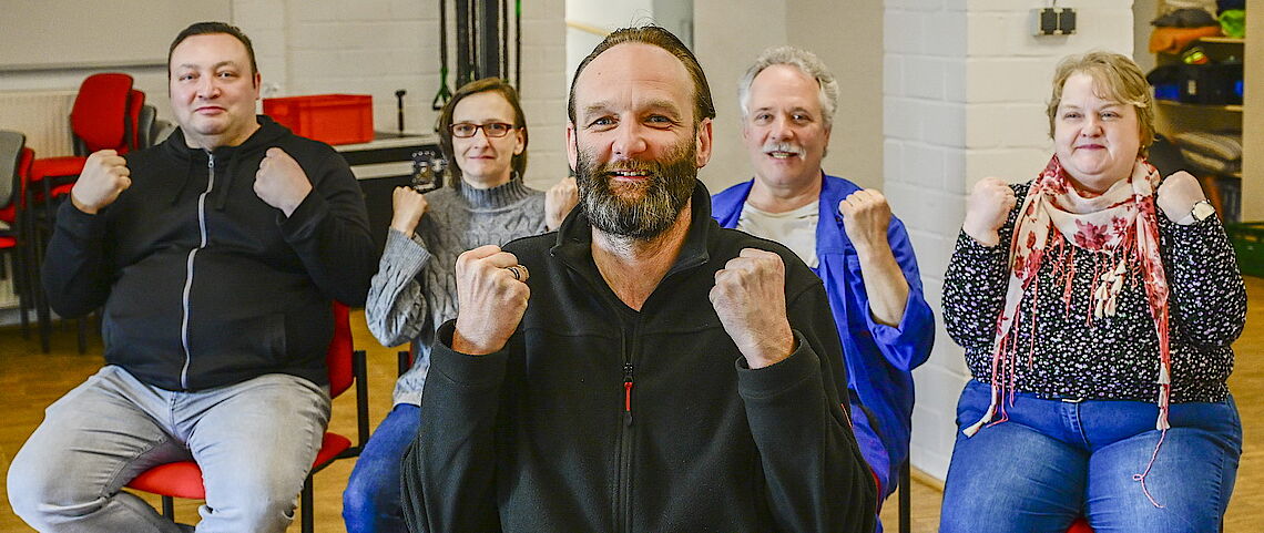 „Spannen Sie nun hier die Muskeln an, indem Sie die Hand zur Faust ballen, den Unterarm beugen und den Oberarm an dem Oberkörper drücken“, sagt Torsten Tretschok mit ruhiger Stimme. „Ruhig weiteratmen!“ Er lässt mehrere Atemzüge Zeit, bis er das Signal gibt: „Und lösen – was spüren sie?“ Eine kleine Gruppe provieler trifft sich jeden Mittwoch im Mehrzweckraum an der Milchstraße zur Progressiven Muskelentspannung nach Jacobsen mit Torsten Tretschok. Die Idee dahinter: Wenn man die Muskeln gezielt anspannt, kann man sie anschließend umso besser locker lassen. Und entspannte Muskeln können auch zu geistiger Entspannung führen.