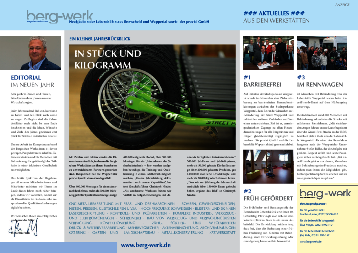 Lesen Sie hier, was wir (beispielhaft) „in Stück und Kilogramm“ im vergangenen Jahr geleistet haben und verschaffen Sie sich gerne auf diesem Wege einen Eindruck, welche Industriedienstleistungen Sie von den Werkstätten im Verbund erwarten können.