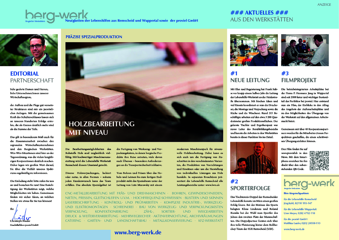 Win-Win-Situationen sind hier an der Tagesordnung, was die vielen langjährigen Kooperationen deutlich machen. Daher legen wir großen Wert darauf, Sie über die Vielfalt unseres Spektrums regelmäßig zu informieren. Die Einladung steht: bitte rufen Sie uns an und besuchen Sie uns! Eine Besichtigung der Werkstätten zeigt, welche Möglichkeiten wir haben. Gemeinsam finden wir sicher Ideen, an welchen Stellen wir etwas für Sie tun können!