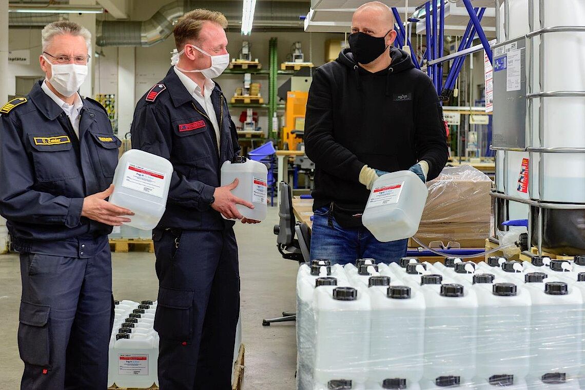 „Unsere Leute identifizieren sich sehr stark mit dieser Aufgabe“, betont Christoph Nieder. Alle sind gerne und sehr überzeugt bei der Sache. Die ersten 1800 Liter sind bereits abgefüllt. Viele weitere werden folgen: „Wir sind aktuell gut ausgestattet mit Desinfektionsmittel“, sagt Feuerwehrchef Ulrich Zander. Es wird nicht nur an Altenheime und Kitas, sondern auch an ambulante Pflegedienste, Hospizdienste und andere verteilt. „Es ist toll, dass die Wuppertaler Firmen sofort bereit waren, zu helfen“, lobt Ulrich Zander, der auch Leiter des operativen Wuppertaler Krisenstabs ist. „Das ist eine gute Erfahrung.“
