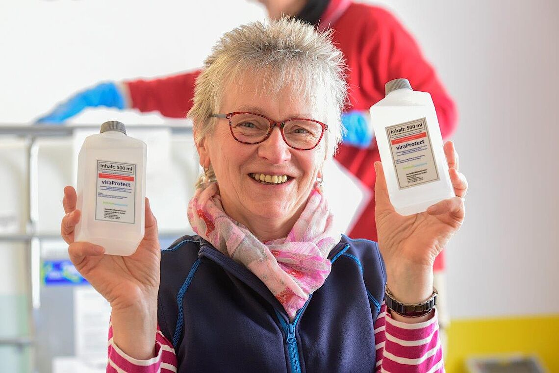 Ein Wuppertaler Flaschenhersteller – stark nachgefragt in diesen Zeiten – sagte spontan 11 000 Plastikflaschen zu. Christoph Nieder, Geschäftsführer von proviel, freute sich ebenfalls über die Anfrage zur Zusammenarbeit: „Uns war es ein Bedürfnis, etwas Systemrelevantes beizutragen.“ Mit ebenerdigen Werkshallen und vielerlei technischen Möglichkeiten war es für die Werkstatt für Menschen mit psychischer Behinderung kein Problem, geeignete Umfüllplätze zu schaffen.