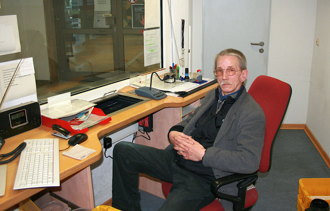 Als er die Möglichkeit bekam, beim Versorgungsamt an der Pforte ein Praktikum zu beginnen, war er begeistert. Täglich schließt er jeden Morgen seine Pförtnerloge auf und sortiert erst einmal in der Poststelle im Hause die Post. Aus Eigeninitiative heraus begann er, auch das Faxgerät zu leeren und die Faxe an die zuständigen Kollegen zu verteilen. Wenn es einmal kleine Probleme gab, halfen ihm die wöchentlichen Gespräche mit seinem Jobcoach. „Ich möchte mich bei Frau Müller wirklich bedanken, weil sie so viel Geduld hatte“, betont er. „Ohne sie hätte ich das nicht durchgehalten.“ Inzwischen sind die meisten Fragen geklärt und er fühlt sich sicher in seinen Aufgaben.