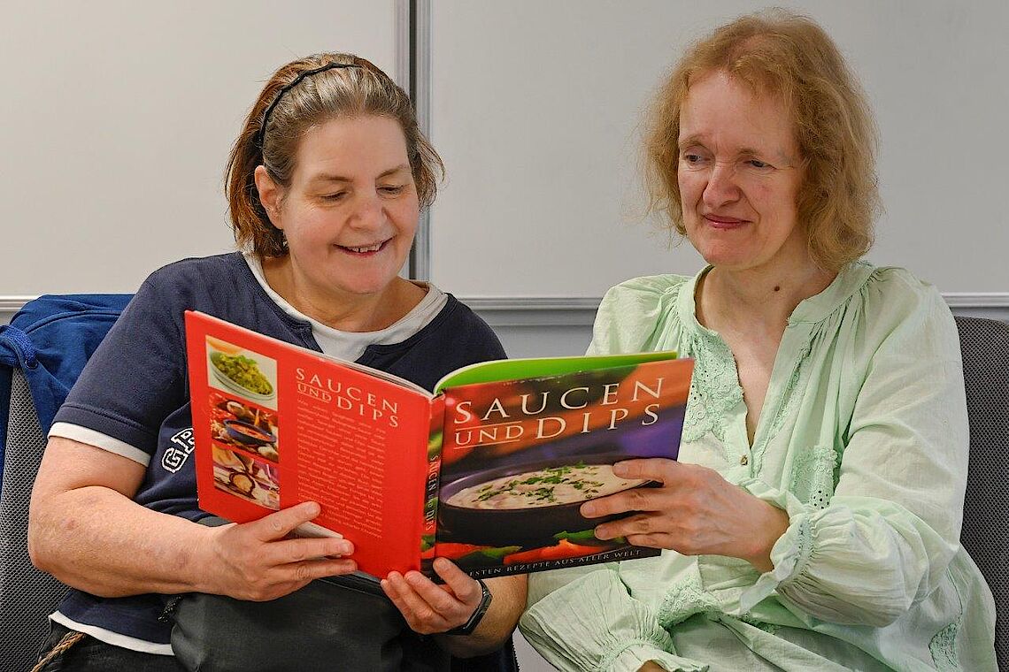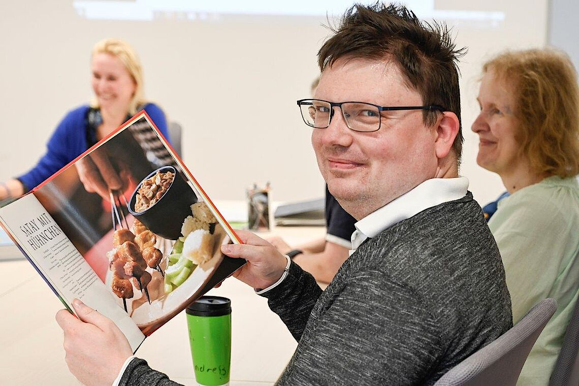 „Bei mir sind es viele alte Familienrezepte, die ich selbst häufig koche“, erzählt Stephanie Wauer. Schnell ist sie mit ihrer Nachbarin in eine Diskussion vertieft, ob Pfannkuchen besser werden, wenn sie nur mit Milch gemacht werden, oder mit je zur Hälfte Milch und Sprudelwasser. Immer wieder hat das Team auch in verschiedenen Kochbüchern nach Anregungen gesucht. Am Ende müssen alle Rezepte per Computer niedergeschrieben und dann gemeinsam ein Layout erstellt werden. „Aber wir dürfen uns von den heutigen Kochbüchern auch nicht unter Druck setzen lassen“, betont Andreas Andreß. Schließlich könne das proviel-Kochbuch nie so schick aussehen wie ein von Profis gestaltetes Exemplar. Dafür kann es etwas anderes: Menschen mit wenig Kocherfahrung genau die Rezepte zeigen, die auch ihnen gelingen und Spaß machen.