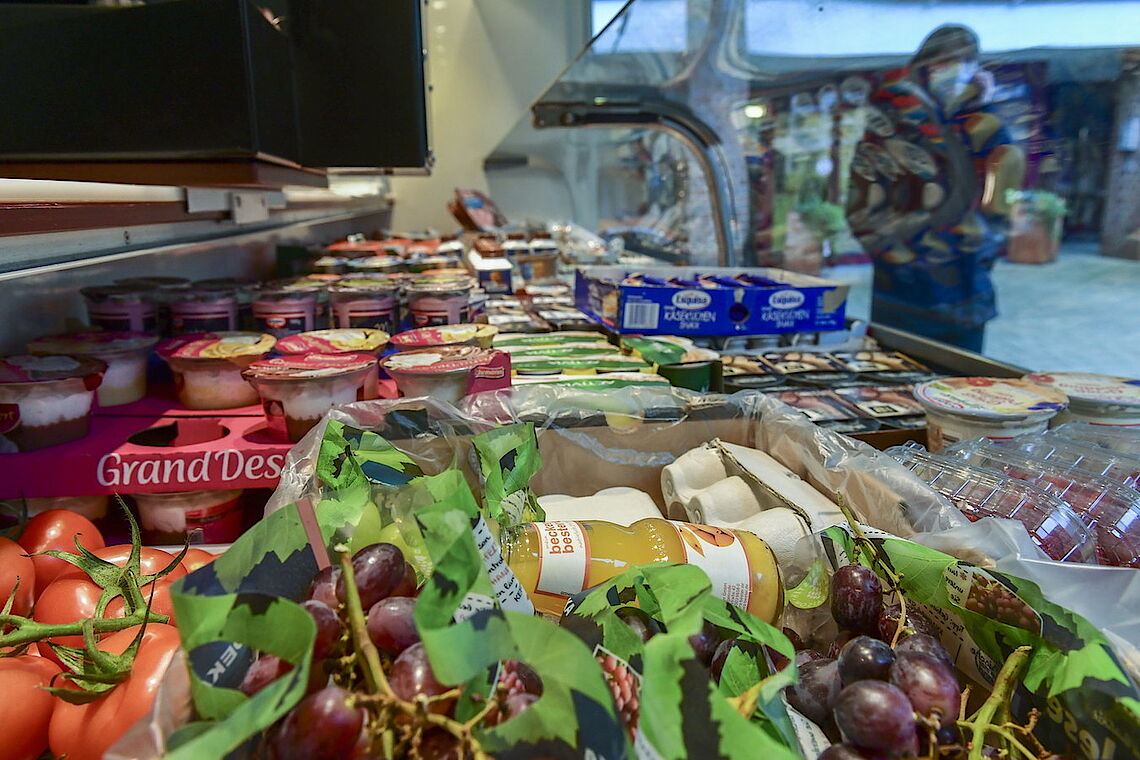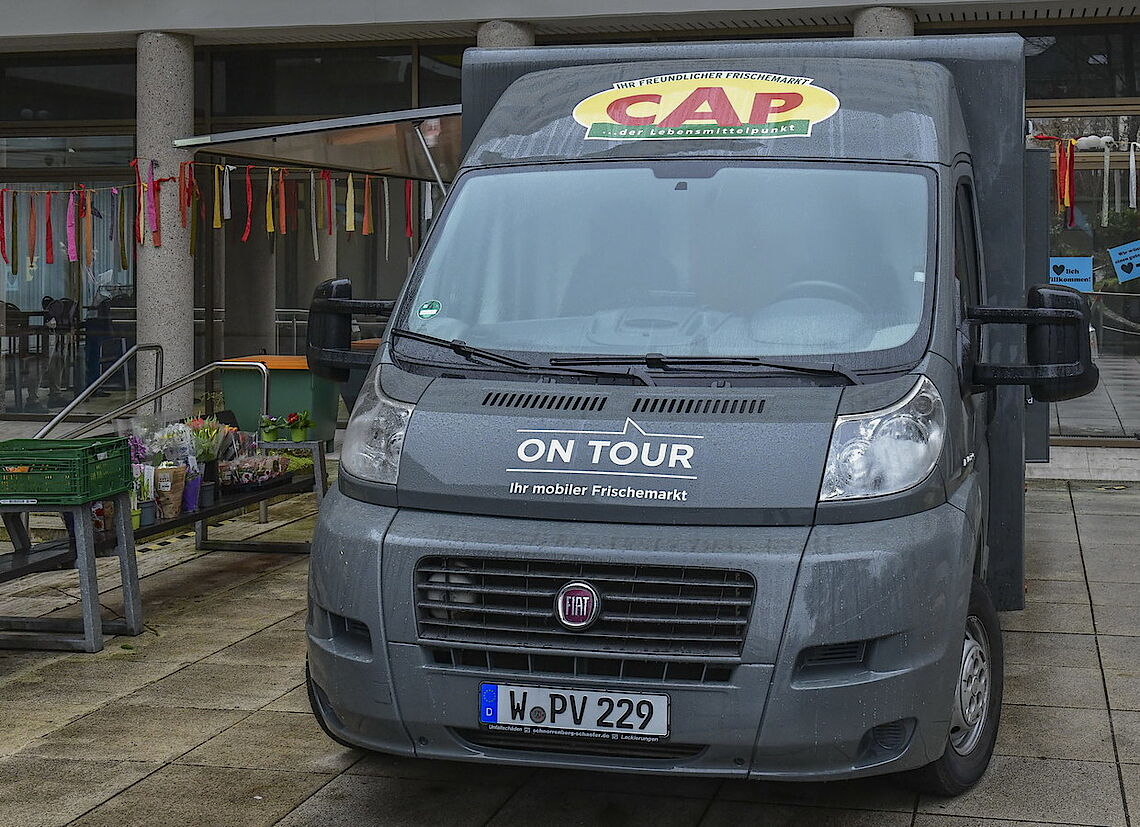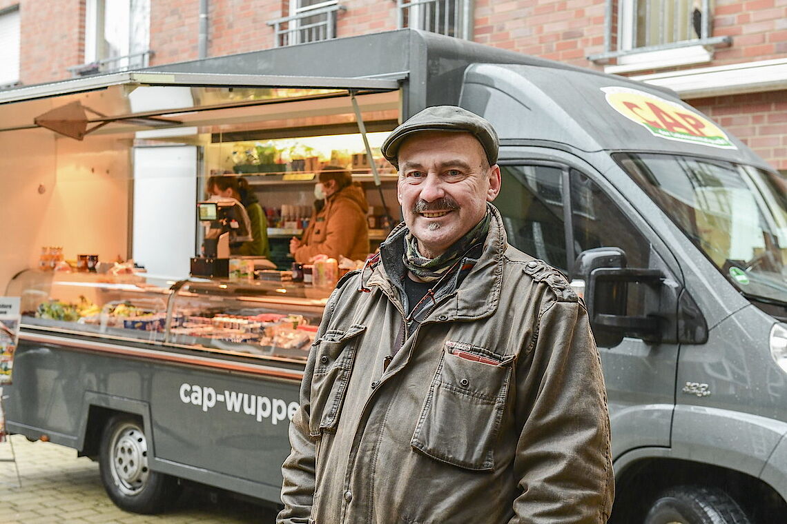 Initiatorin des Projektes ist Elisabeth Rudkin, Leiterin des Sozialen Dienstes im Agaplesion Bethesda Seniorenzentrum Wuppertal. Dort hat der Verkaufswagen seit 20 Jahren Tradition. „Als der Betreiber in Rente ging, brach uns das Herz. Für die Bewohner ist das eine wichtige Abwechslung und jeder Gang in die Stadt ist für sie beschwerlich“, erklärt sie. Deshalb empfing das Seniorenzentrum den erneuerten CAP-Wagen mit begeisterten Willkommens-Plakaten. Christoph Nieder, Geschäftsführer von proviel, konnte sich sofort für den Verkaufswagen begeistern: „Das ist ein schönes neues Feld für uns und die Freude, mit der wir hier empfangen werden, ist wunderschön.“ Er ließ den Wagen gründlich überarbeiten und im CAP-Design gestalten. Jetzt locken in der attraktiven Theke Süßspeisen, Aufschnitt, Käse, Obst und Gemüse. Weiter hinten stehen Fertiggerichte, Drogerieartikel, Milch, Kekse und Getränke.