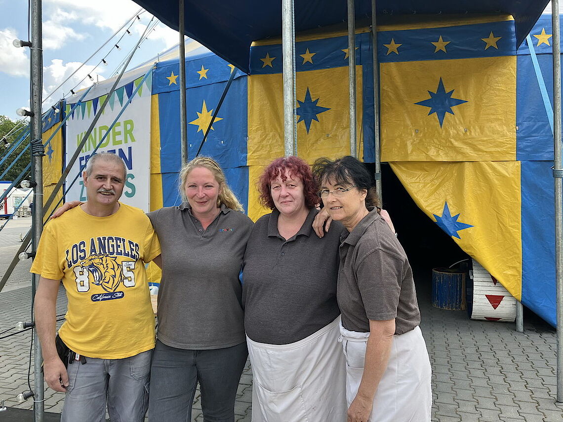Für das Team vom Schulbistro ist der Einsatz beim Kinderferienzirkus immer ein Highlight, denn neben dem Besteck in Servietten einrollen oder dem Vorbereiten der Wärmebehälter bleibt genug Zeit das Training der Kinder und der Zirkus-Crew zu bestaunen. Im Laufe des Vormittags wird dann von den Kolleg:innen aus der Farbmühle das dort zubereitete Essen geliefert. Besonders die "klassischen" Kindergerichte wie Spaghetti Bolognese werden mit großer Freude von den Kindern gegessen.