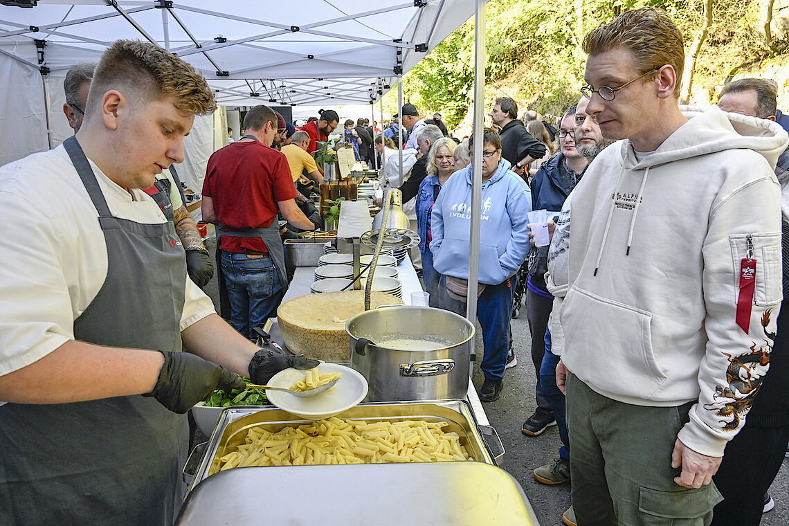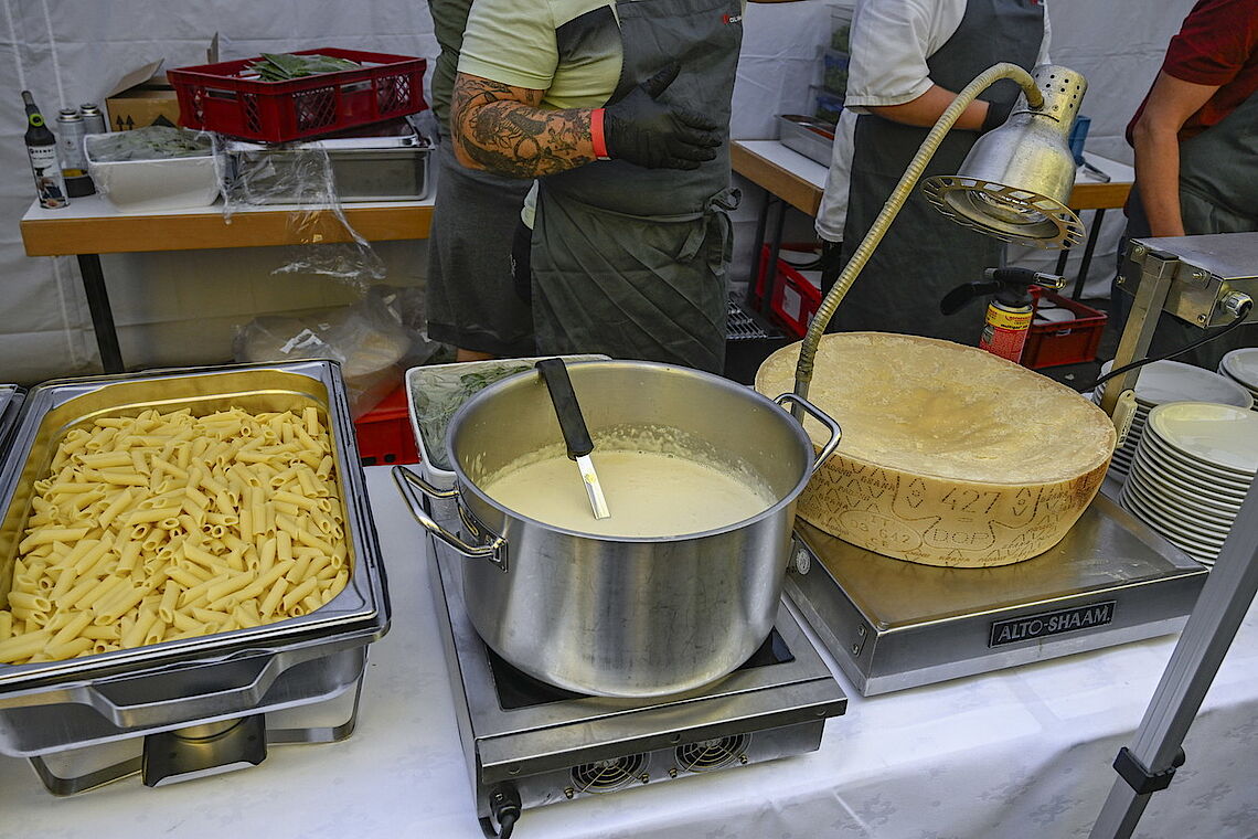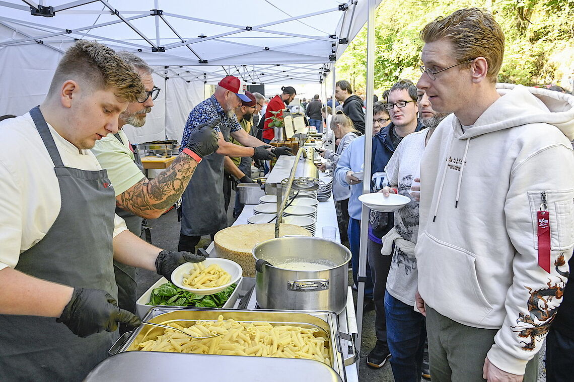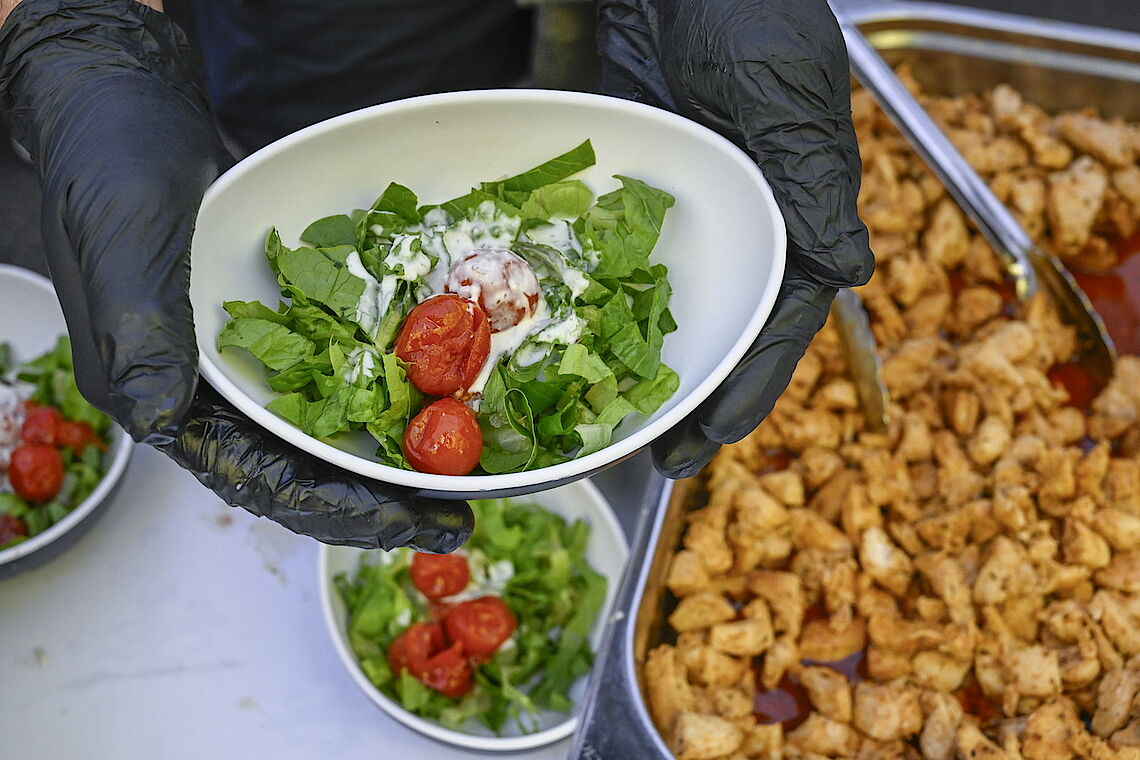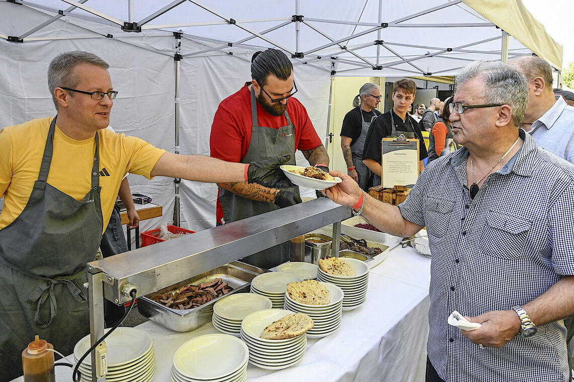 Beim Essen - serviert von der Culinaria mit der proviel auch im Okavango zusammenarbeitet - gab es eine große Auswahl von Bratwürstchen mit Brötchen oder Kartoffelsalat über Nudeln in Käsesauce und Pita mit Rindfleischsteak bis hin zu Flammlachs mit Drillingen und Salat. „Der gegrillte Lachs schmeckt super“, sagte Sevge Krayl fröhlich, die gemütlich mit Kolleginnen am Tisch saß. Als Dessert lockten Kaffee und Kuchen, Eis vom Eiswagen sowie bunte Cocktails.