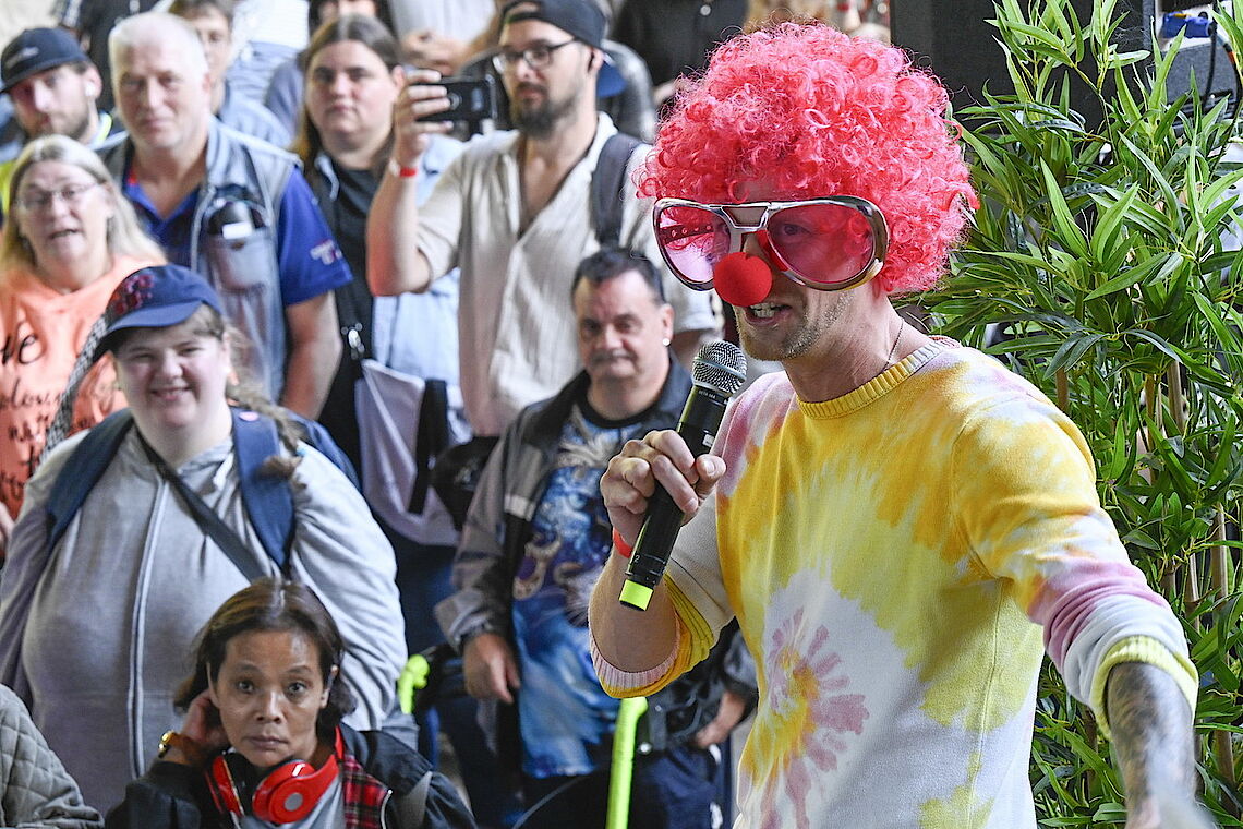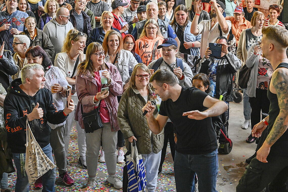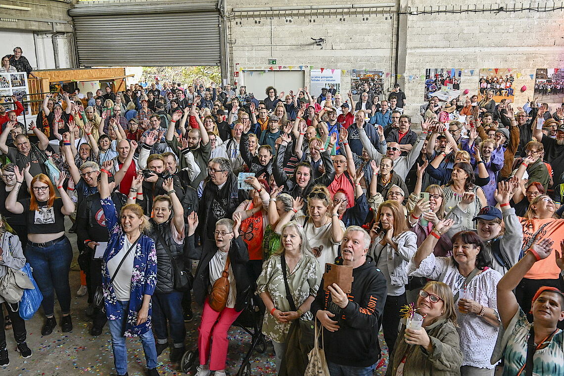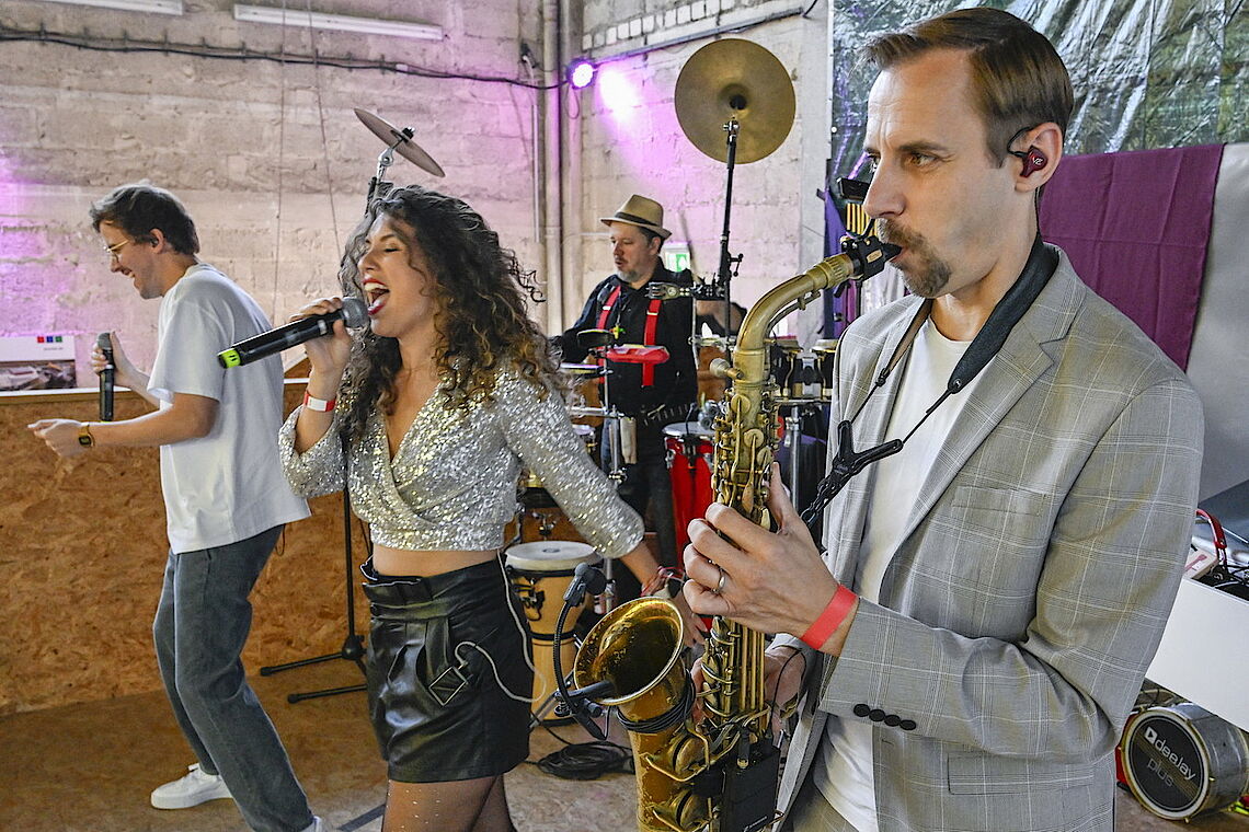 Als dann um 13.30 Uhr die Band den Saal rockte, war kein Halten mehr. Überall tanzten Menschen alleine, zu zweit oder in Grüppchen. Draußen wippten sie mit den Füßen im Takt der Musik. Und sogar noch an der Nordbahntrasse horchten die Leute auf.