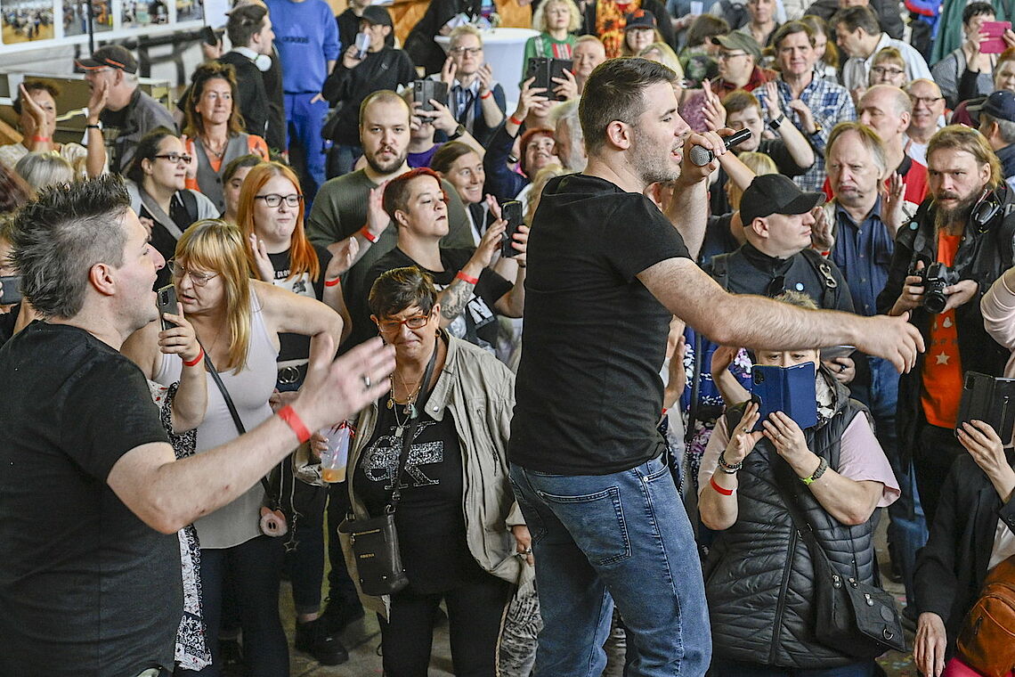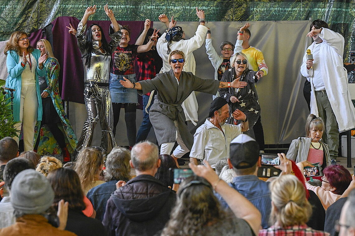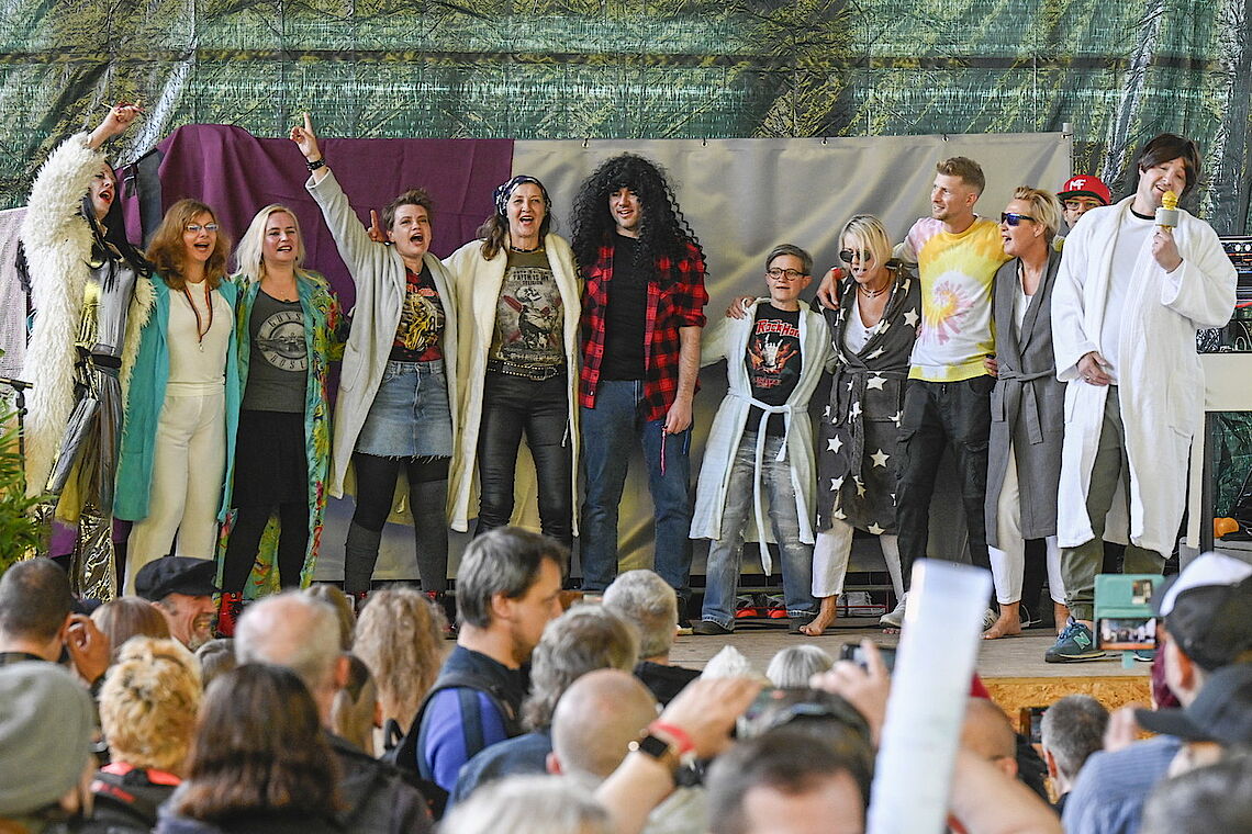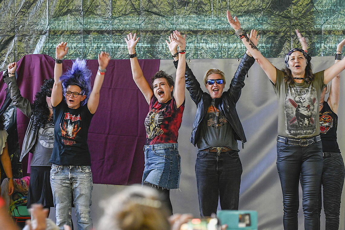 Als dann um 13.30 Uhr die Band den Saal rockte, war kein Halten mehr. Überall tanzten Menschen alleine, zu zweit oder in Grüppchen. Draußen wippten sie mit den Füßen im Takt der Musik. Und sogar noch an der Nordbahntrasse horchten die Leute auf.