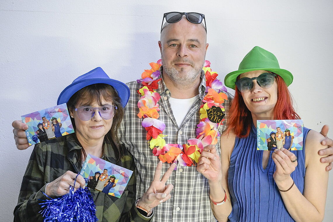 Foto als ErinnerungBeliebt war wieder die Fotobox. Die meisten ließen sich mit ihrer Lieblingskollegin oder ihrem besten Kumpel fotografieren. Viele schmückten sich dabei mit Girlanden, Brillen oder Hüten. „Das Bild rahme ich mir wieder und hänge es auf“, erzählte Maria Papastavrou. „Wir drei sind ein Herz und eine Seele.“