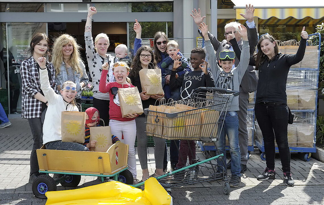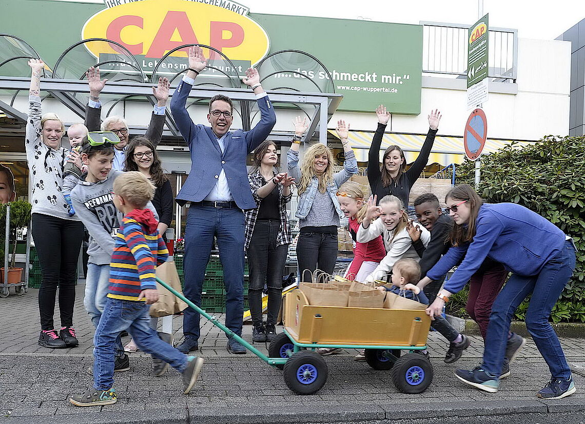 In guter gemeinsamer Nachbarschaft am Eckbusch und auch in unmittelbarer Nachbarschaft zum gerade saisoneröffneten Freibad Eckbusch haben sich die Verantwortlichen der KiJu (Kinder- und Jugendwohngruppen der Stadt Wuppertal) mit der Marktleitung im CAP-Frischemarkt etwas ganz Besonderes einfallen lassen und so können heute die 130 Kinder und Jugendlichen der KiJu ihre geschenkte Frühlings-/Freibadtüte mit Obst, Naschwerk und Getränken für den ersten Frühjahrsausflug 2017 entgegennehmen. Gerne investiert hier das CAP-Team am Eckbusch, um die gute Arbeit der KiJu zu unterstützen und vor allem allen Kindern und Jugendlichen (hoffentlich) eine Freude zu machen.
