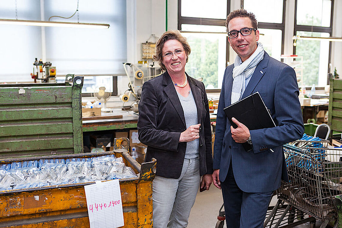 Firmen wie Schmersal, Emka oder Puky nutzen dies und lagern Fertigungsschritte in die proviel-Werkstätten aus. Auch der Handwerkzeughersteller P. Hermann Jung KG entschloss sich vor mehr als fünf Jahren zu einer Zusammenarbeit mit proviel. „Wir sind ein Produktionsbetrieb, der ausschließlich in Deutschland fertigt. Das bedingt, dass wir hohe Lohnnebenkosten zahlen, gleichzeitig aber am Markt bestehen müssen“, sagt Geschäftsführerin Ulrike Jung. Auf der Suche nach Alternativen stieß sie auf das Angebot von proviel. Beide Seiten setzten sich zusammen und klärten, wo der Bedarf liegt und was die proviel-Mitarbeiter leisten können. Die Lösung sah so aus, dass proviel-Mitarbeiter die fast fertigen Werkzeuge bei Jung abholten, sie in den Werkstätten fertigstellten und zurück nach Küllenhahn brachten. Die Bezahlung erfolgte pro Stück. „Das hat hervorragend funktioniert“, betont Jung. Christoph Nieder, Geschäftsführer der proviel GmbH, bestätigt dies: „Nach und nach ist so eine verlässliche Zusammenarbeit entstanden, die sogar ausgebaut werden konnte.“