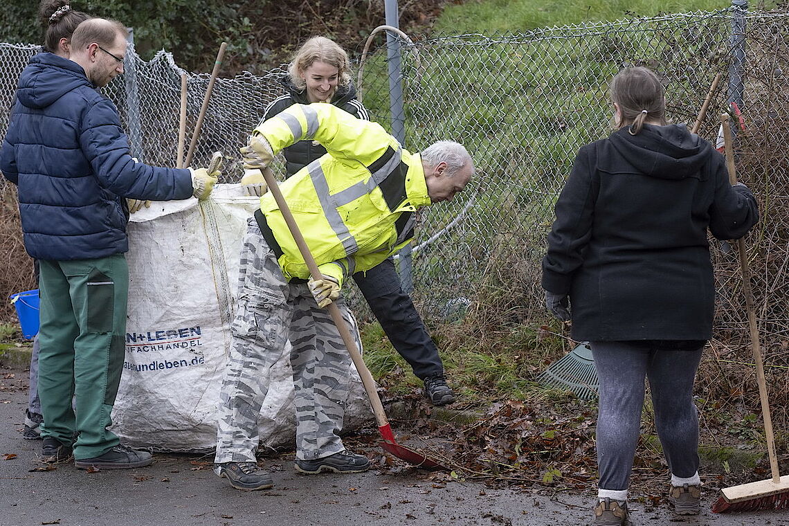 Schwimmbad sorgt für leuchtende AugenRomina Schaffarczyk bekommt bei dieser Aussicht sofort glänzende Augen: „Als Kind bin ich viel schwimmen gegangen – der Geruch im Schwimmbad erinnert mich sofort an die schöne Zeit dort“, erzählt sie und freut sich schon sehr auf die Arbeit im Freibad-Team. Auch Nadine Haustein ist begeistert: „Alles, was mit Schwimmbad zu tun hat, war schon immer meins.“ Oliver Weise denkt ebenfalls gerne an seine Zeit im Schwimmverein zurück. So erfüllt sich schon jetzt die Absicht von Yesim Fischer, Leiterin der Inklusion bei proviel: „Mit dem Freibad können wir noch einmal ein ganz anderes Berufsfeld anbieten, in dem es auf dem Ersten Arbeitsmarkt viele Jobs gibt.“ Das kann Frauke Frank, Abteilungsleiterin Bäder bei der Stadt Wuppertal, bestätigten: „Wir suchen händeringend Personal.“ Sie sieht die Kooperation mit proviel sehr positiv und hat schon viele Ideen, wo sich die provieler in den städtischen Bädern zusätzlich ausprobieren könnten.Neben den Menschen, die Schwimmen lieben, gibt es auch solche im Team Freibad, die einfach gerne an der frischen Luft sind: „Ich arbeite gerne im Freien“, sagt Jürgen Hahl und schippt engagiert die Zweige in die Schubkarre. Thomas Frank geht es ebenso, er hat schon in der Zoo-Gärtnerei Erfahrung gesammelt. Jonas Sittnewski ist sowieso in seinem Element: Der ausgebildete Gärtner schneidet die Büsche am Gehweg exakt auf eine Linie. Am Ende sieht alles gepflegt und ordentlich aus. Und die provieler haben nicht nur ein nettes Schwimmbad kennen gelernt und sind dort gut verpflegt worden, sondern blicken auf ein tolles Ergebnis zweier intensiver Tage.