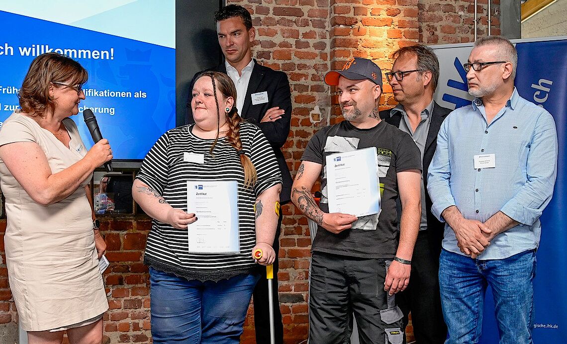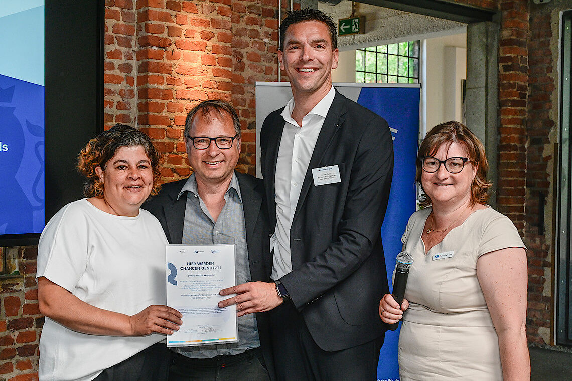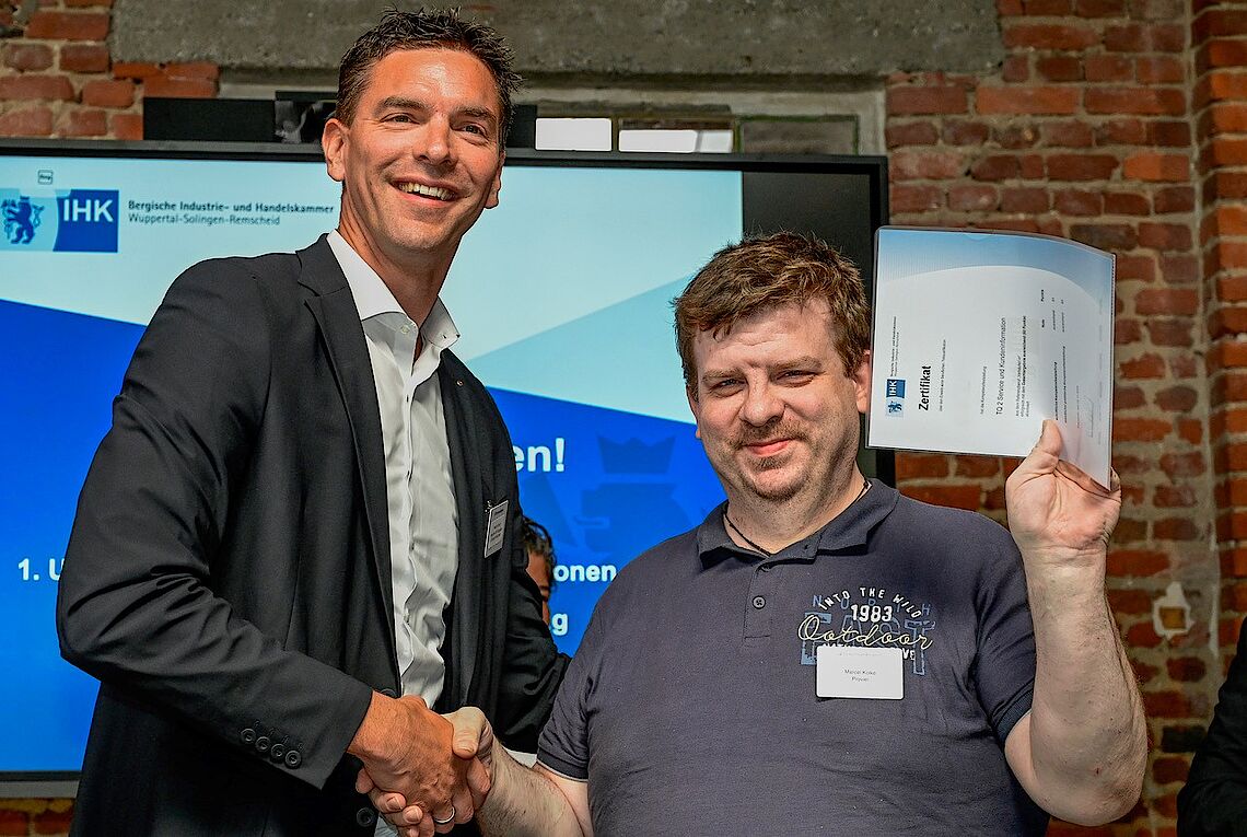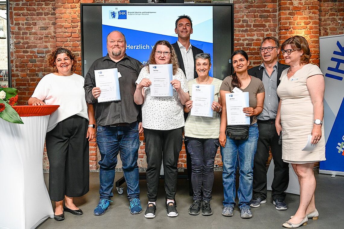 Vor rund 100 Gästen im Rahmen einer IHK-Veranstaltung zur Fachkräftesicherung beim ersten IHK-Unternehmerfrühstück im Knipex-Werk in Wuppertal-Cronenberg haben wir tolle Ehrungen erfahren. Zum einen wurden wir als proviel GmbH für unserer begleitete Teilqualifikationen im IHK-Projekt „Chancen nutzen! Mit Teilqualifikationen“ ausgezeichnet. Vor allem und insbesondere haben aber die erfolgreichen provieler aus der Teilqualifikation Lager und Logistik ihre Ehrung fürs 5. Modul entgegengenommen und die erfolgreichen Kolleginnen und Kollegen aus dem CAP-Frischemarkt ihre Auszeichnung zum erfolgreich bestandenen zweiten Modul.