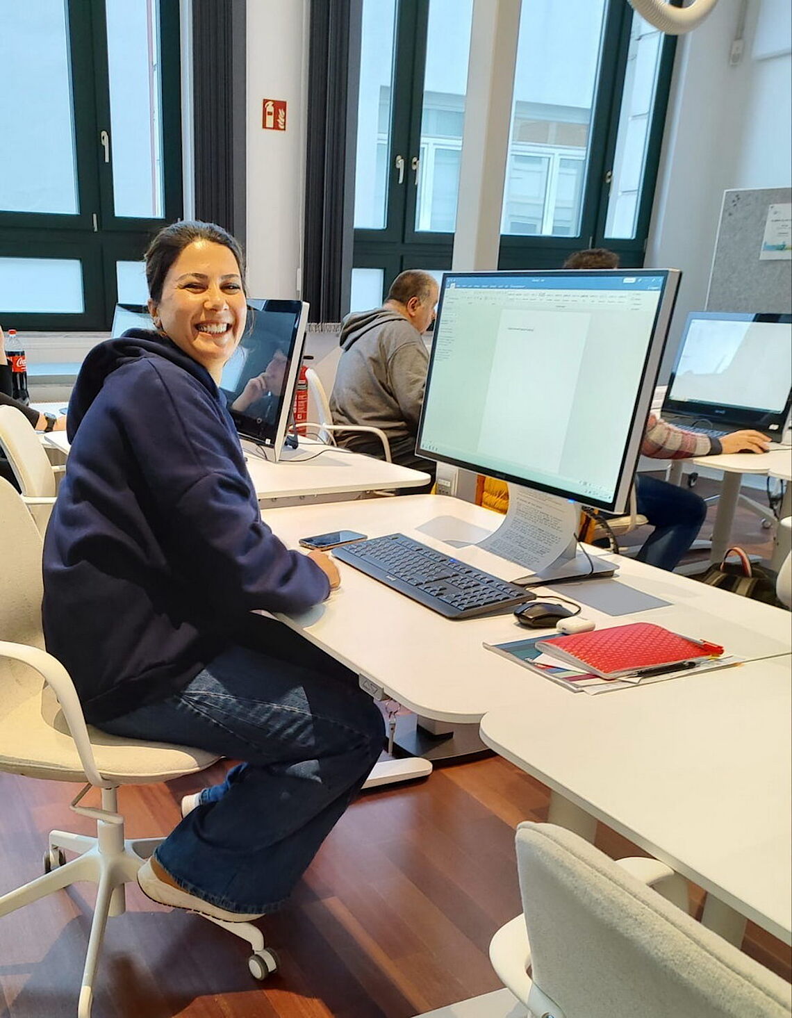 Gleichzeitig dient das PIKSL-Labor mit der großen Kaffeeküche auch als Treffpunkt. Hüsaley Polat etwa kommt fast täglich hierher. Sie übt am PC für ihre B1-Sprachprüfung. Vor 15 Monaten kam sie aus Aserbaidschan zu ihrem Mann nach Wuppertal. Jetzt freut sie sich, im PIKSL-Labor nicht nur einen Computer zur Verfügung zu haben, sondern viel Deutsch zu sprechen.