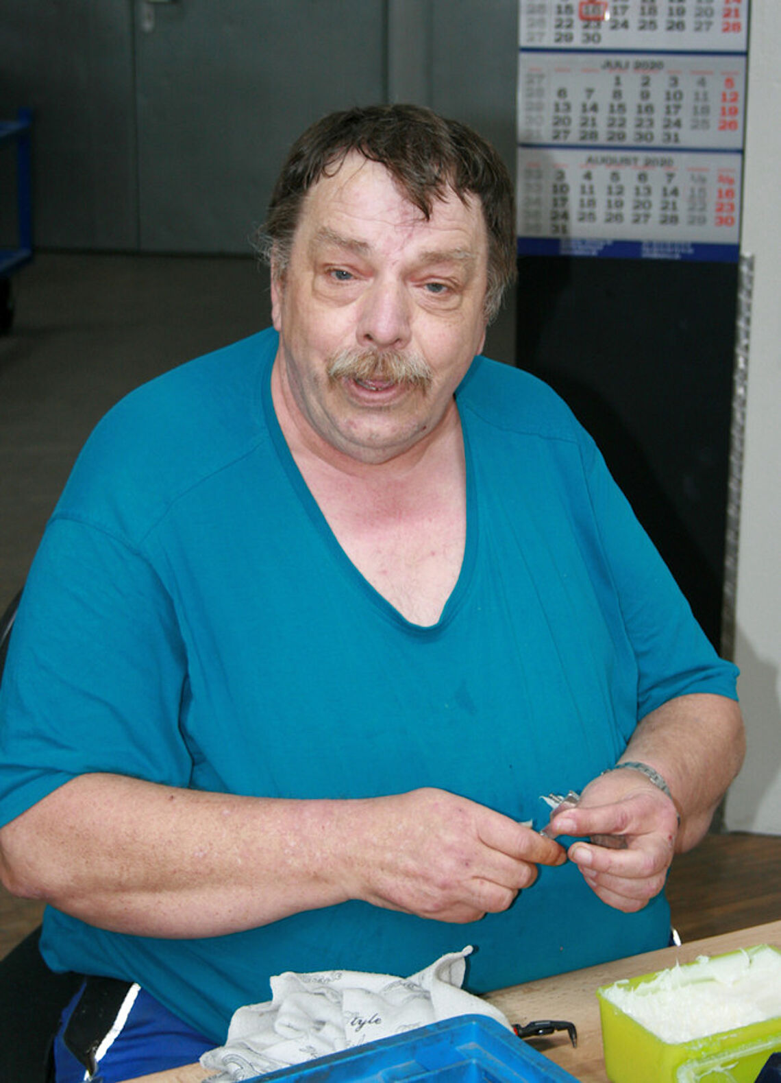 Die ersten Tage gefielen ihm ganz gut. „Das war wie Urlaub.“ Doch je länger der Lockdown dauerte, desto schwieriger wurde die Situation für Karl-Heinz Schaffeld: „Länger als 14 Tage ohne Arbeit ist für mich ein Horror.“ Er guckte von morgens bis abends Fernsehen oder spielte Computerspiele. „Das wurde bald langweilig.“ Deshalb war der Metaller sehr dankbar, als ihm proviel Heimarbeit vorbeibrachte. Dreimal pro Woche erhielt er ein Paket mit „Fischen“ für einen Türschließmechanismus, die in einen Hebel hineingedrückt werden müssen. Karl-Heinz Schaffeld setzte sich jedes Mal sofort hin und arbeitete sein Paket innerhalb kürzester Zeit ab.