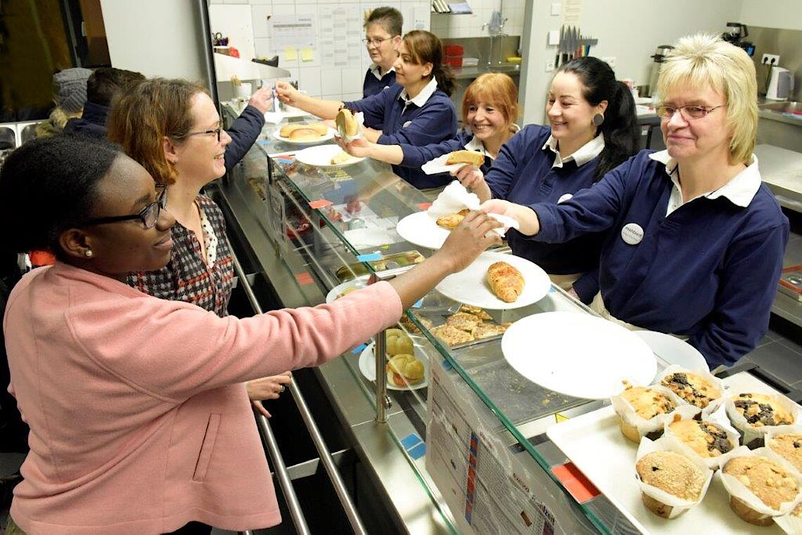 Paula Toto-Kiese, stellvertretende Schülersprecherin, fasst den positiven Eindruck ihrer Mitschülerinnen und Mitschüler zusammen: „Wirklich leckere Speisen, übrigens auch vegetarisch, und ein sehr freundliches und professionelles Team – wir sind total begeistert vom neuen Bistro!“