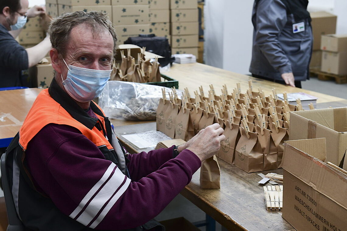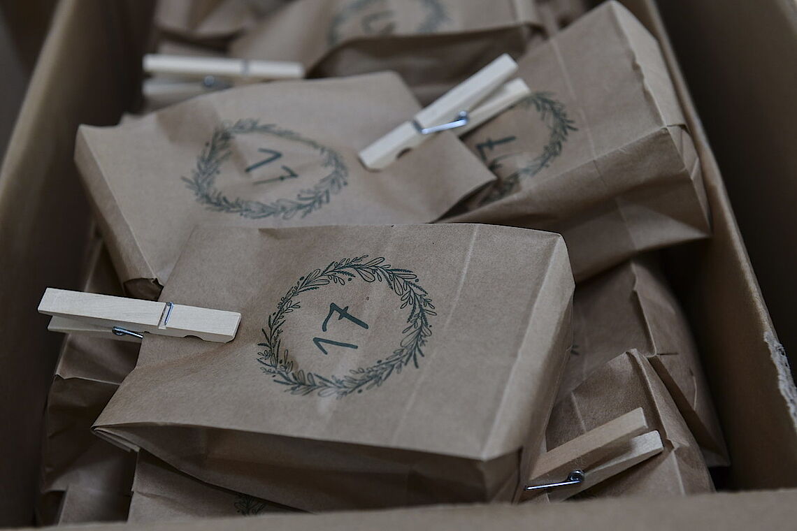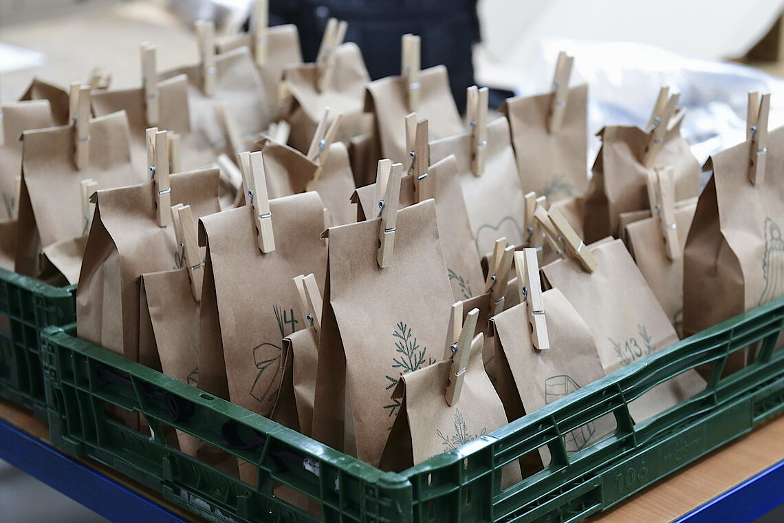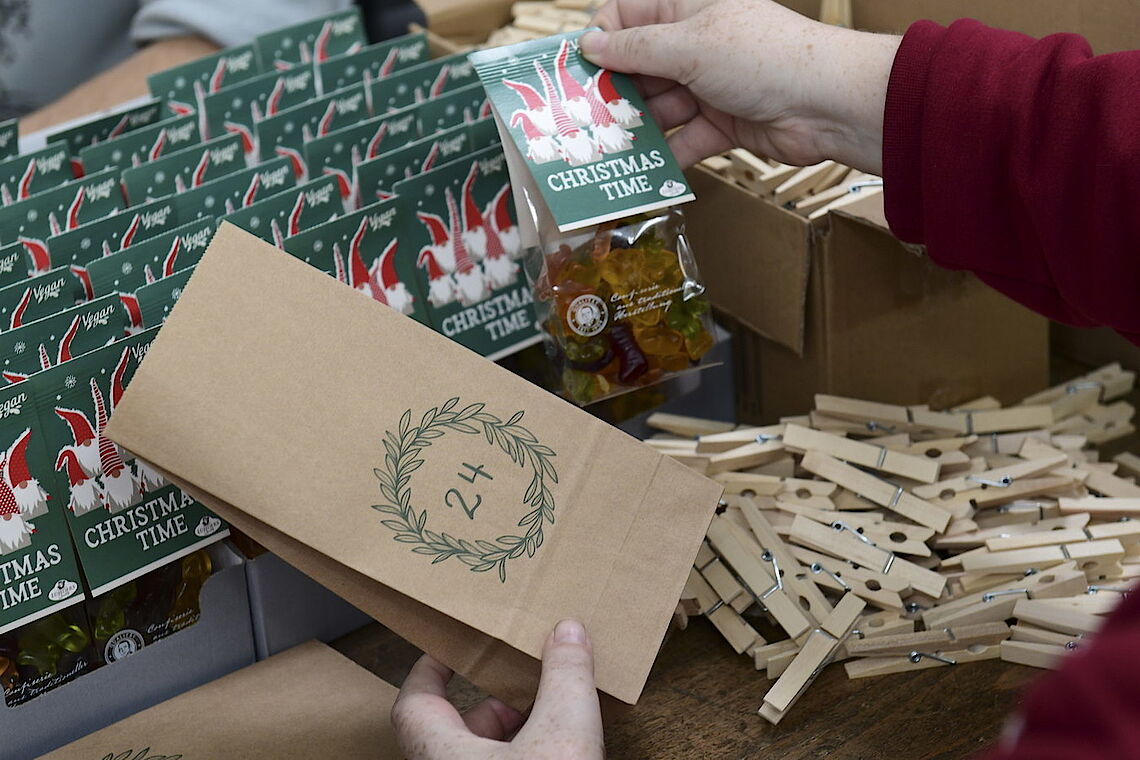 „Das hier ist eine wunderbare Arbeit – einfach nur schön“, findet Mitarbeiterin Sabine Weides. Bei proviel, der Werkstatt für Menschen mit psychischen Erkrankungen, herrscht schon seit Ende September Weihnachtsstimmung: Seitdem packen die Mitarbeitenden Adventskalender für die Wuppertaler Vegan Box. In verschiedenen Abteilungen stehen die kleinen Papiertüten mit den weihnachtlichen Zeichnungen und natürlich den Zahlen für die Tage; liebevoll stecken die provieler die jeweils vorgesehene Köstlichkeit in die Tüte und falten sie oben zu. „Das hier ist eine sinnvolle Aufgabe – etwas für Mitmenschen zu tun, was sie erfreut. Das ist für mich wie eine Ladestation“, sagt Albrecht Krause und lässt das nächste Punschgewürz in den Beutel gleiten.