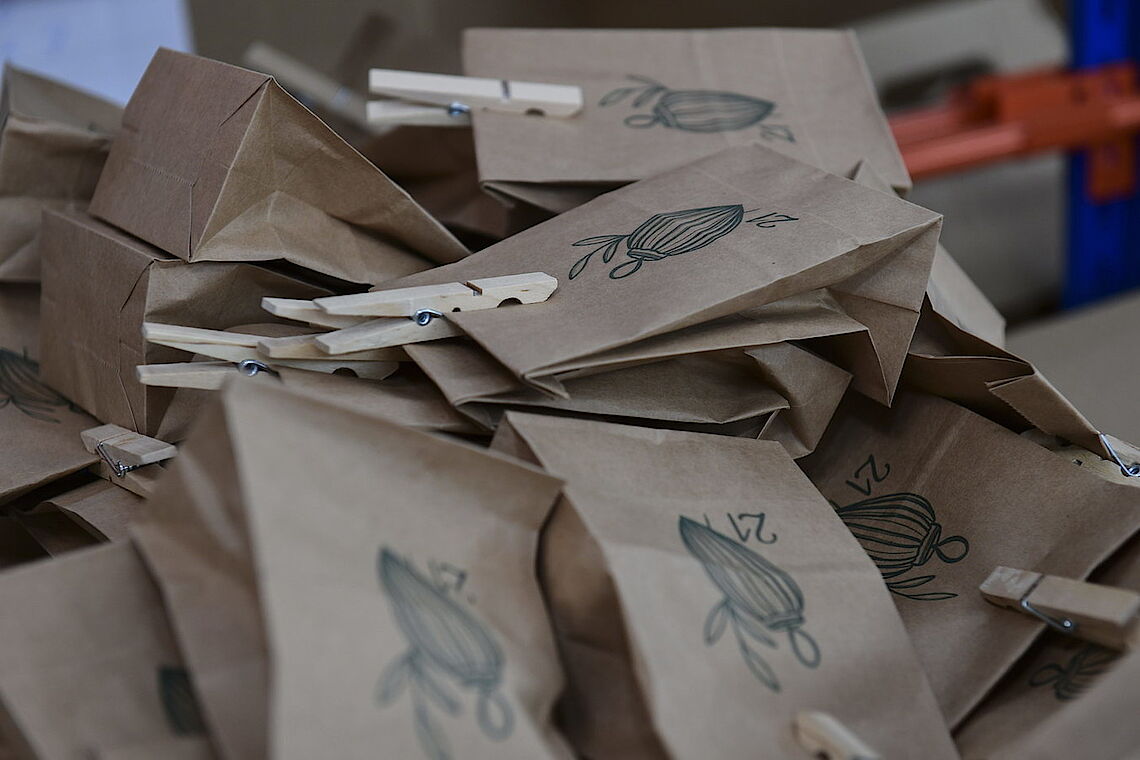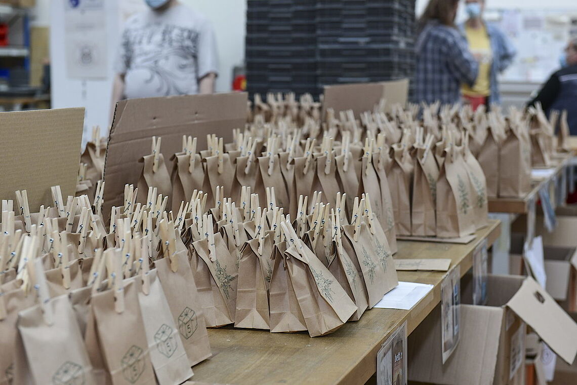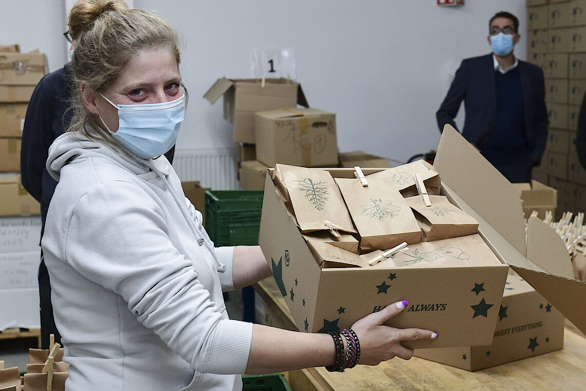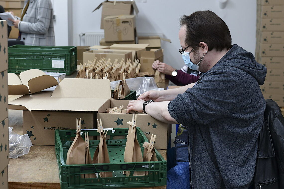 „Das hier ist eine wunderbare Arbeit – einfach nur schön“, findet Mitarbeiterin Sabine Weides. Bei proviel, der Werkstatt für Menschen mit psychischen Erkrankungen, herrscht schon seit Ende September Weihnachtsstimmung: Seitdem packen die Mitarbeitenden Adventskalender für die Wuppertaler Vegan Box. In verschiedenen Abteilungen stehen die kleinen Papiertüten mit den weihnachtlichen Zeichnungen und natürlich den Zahlen für die Tage; liebevoll stecken die provieler die jeweils vorgesehene Köstlichkeit in die Tüte und falten sie oben zu. „Das hier ist eine sinnvolle Aufgabe – etwas für Mitmenschen zu tun, was sie erfreut. Das ist für mich wie eine Ladestation“, sagt Albrecht Krause und lässt das nächste Punschgewürz in den Beutel gleiten.