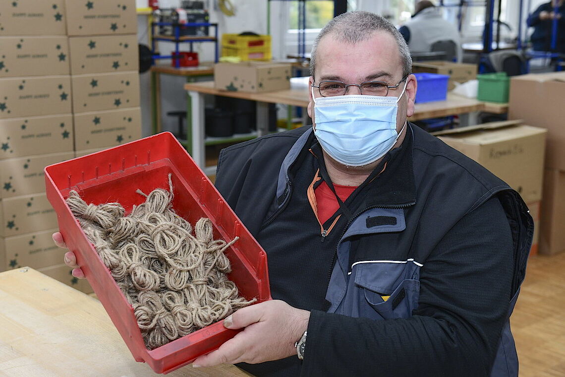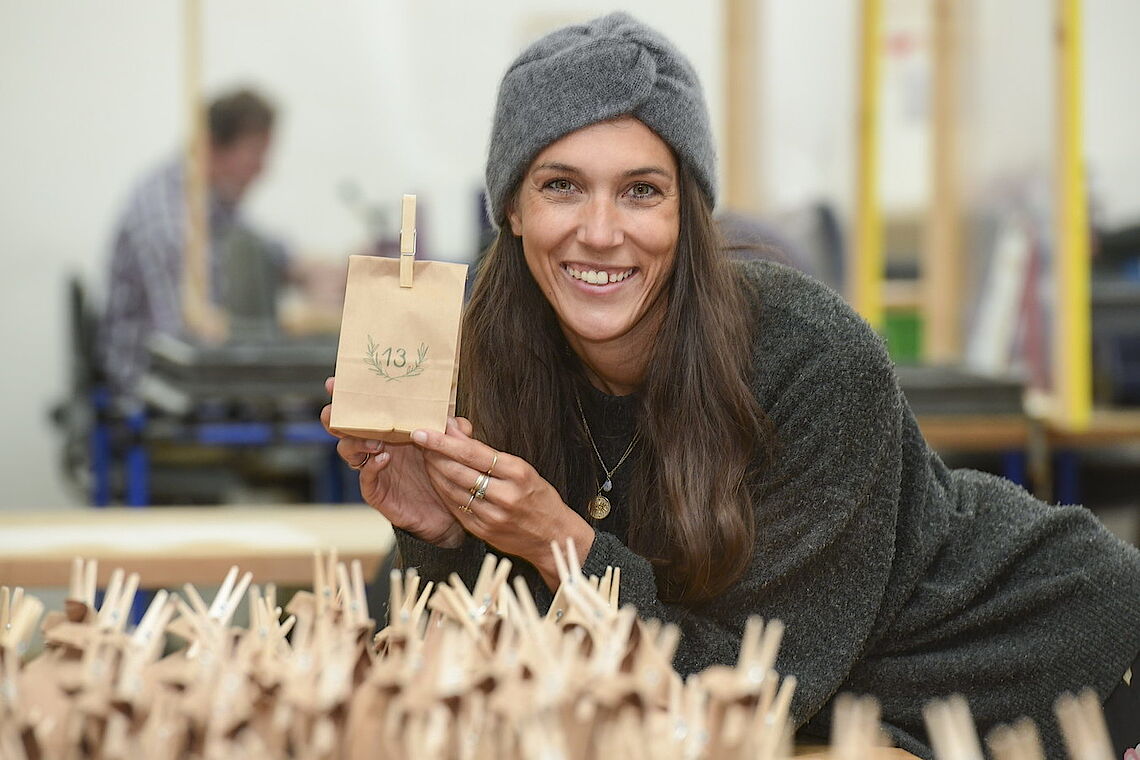 „Hier werden die Adventskalender super gepackt – wir hatten anders als in den vergangenen Jahren noch keine einzige Reklamation, dass etwas zerbrochen ist“, freut sich Auftraggeberin Katharina Geib. Sie ist sehr zufrieden mit der Qualität der von proviel geleisteten Arbeit und möchte zukünftig noch mehr Aufträge dort erledigen lassen.Damit das so bleibt, gibt es detaillierte Arbeitsanweisungen und eine zuverlässige Qualitätskontrolle. So zeigen Zeichnungen den Mitarbeitenden, welches Päckchen im Karton an welcher Stelle liegen soll. Die beiden Produkte in Gläsern stehen dann gut geschützt in der Mitte. Auf Fotos ist zu sehen, welcher Artikel für welchen Adventstag vorgesehen ist. Am Schluss wird jeder Adventskalender gewogen, um sicherzugehen, dass die richtigen Produkte in der richtigen Menge darin sind. „Als wir noch selbst gepackt haben, sind wir manchmal durcheinander gekommen. Aber hier läuft das alles super!“, sagt Katharina Geib beeindruckt und lobt, dass selbst die Kordeln zum Aufhängen des Kalenders ordentlich aufgewickelt sind.