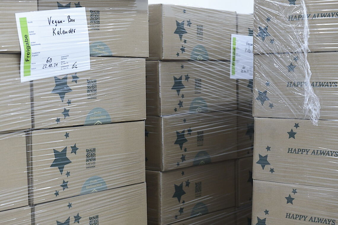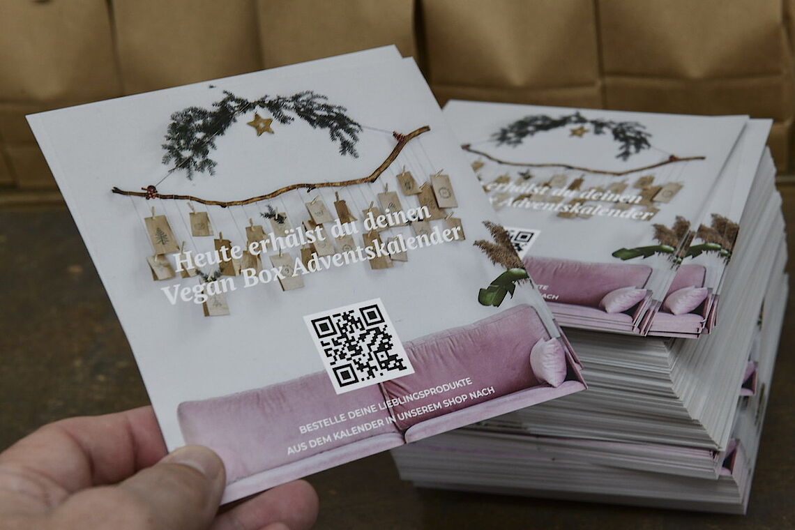 Bei der Vegan Box bringen die vier verschiedenen Adventskalender rund die Hälfte des Jahresumsatzes. Schon im Januar fängt das Ehepaar Geib jedes Jahr an, die nächsten Kalender zu planen, die Zeichnungen in Auftrag zu geben und zu suchen, welche Produkte die Kunden diesmal überraschen können. „Die Leute lieben die Überraschung“, stellt Katharina Geib fest. Deshalb verkauft die Vegan Box neben den Adventskalendern auch verschiedene andere Boxen, deren Inhalt geheim bleibt.
