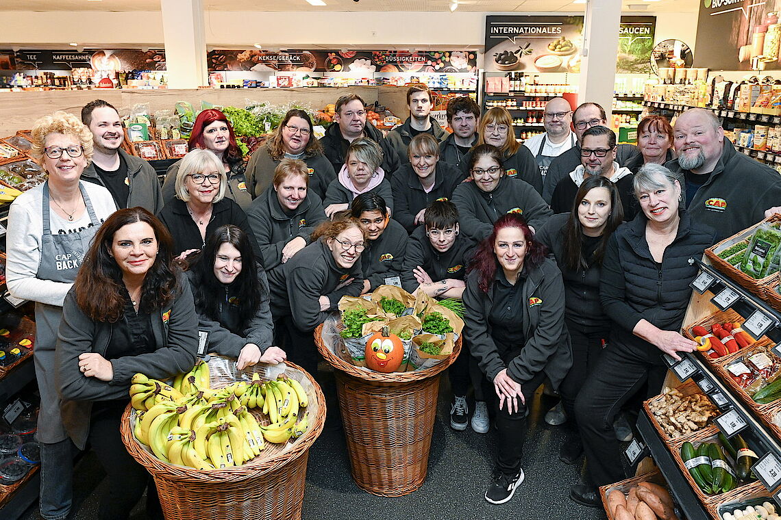 Stolz ist Anna Margagliotti darauf, dass inzwischen fünf Mitarbeitende die von proviel in Zusammenarbeit mit der IHK angebotene Ausbildung in Teilqualifizierung geschafft haben und jetzt ausgebildete Verkäufer*innen sind. „Das ist eine große Erleichterung, weil diese noch mehr mitdenken und sich sehr gut auskennen“, betont sie. Immer wieder versucht sie, in den Werkstätten von proviel neue Interessenten für den CAP-Markt zu begeistern. Die Menschen mit psychischen Erkrankungen können mit einem Praktikum ausprobieren, ob ihnen der CAP-Markt gefällt. Hier zeigt die Leiterin die verschiedenen Arbeitsschritte und worauf es dabei ankommt. Wer möchte, kann im Theorie-Unterricht sein Wissen erweitern und auch bei einer Kompetenzfeststellung der IHK beweisen. Dieser Weg kann langfristig zu einer vollwertigen Ausbildung führen und damit zu guten Möglichkeiten auf dem ersten Arbeitsmarkt.