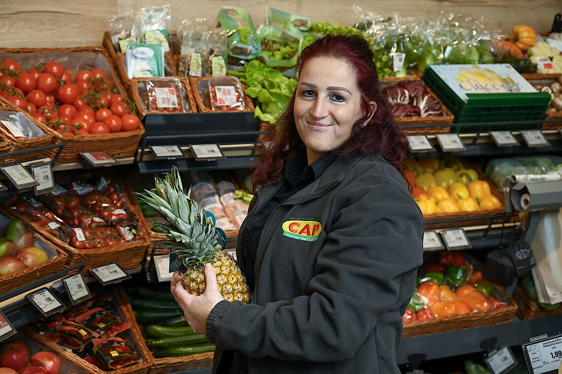 Seit acht Jahren arbeitet Anna Margagliotti im CAP-Markt. Die erfahrene Einzelhandelskauffrau macht schon lange dort die Dienstpläne, kennt viele Stammkundinnen und deren Bedürfnisse, hat das Vertrauen der Mitarbeitenden. Jetzt hat die 41-Jährige die Leitung des CAP-Marktes übernommen. „Mir ist es wichtig, die Kunden zufriedenzustellen, auf Kundenwünsche einzugehen“, betont die verheiratete Mutter von zwei Kindern.