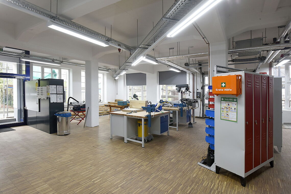 Viel Platz für Qualifizierungen und berufliche Erprobungen steht jetzt den Werkstattmitarbeiterinnen und Werkstattmitarbeitern neu zur Verfügung. Und wir können unserem Motto treu bleiben möglichst viel in Eigenregie zu erledigen.