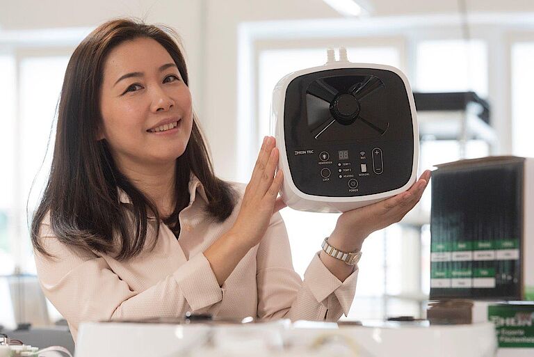 Das ursprünglich aus China stammende Unternehmen setzt dabei ganz bewusst auf „made in Germany“ und den Standort Deutschland. Über die Wuppertaler Wirtschaftsförderung entstand vor einigen Monaten der erste Kontakt zu proviel, der Werkstatt für Menschen mit psychischem Handicap. Hier werden inzwischen die Steuerungseinheiten für die erste Serie montiert. „Eine anspruchsvolle Aufgabe, bei der wir dank unseres breiten Know-hows und der räumlichen Nähe zum Kunden direktes Feedback für die weitere Optimierung des Produkts geben können“, schildert Abteilungsleiter Holger Pfannkuch. Die sensible Elektronik muss dabei besonders sorgfältig montiert werden, damit später Temperaturregelung, WiFi-Steuerung und Pumpe miteinander harmonieren.