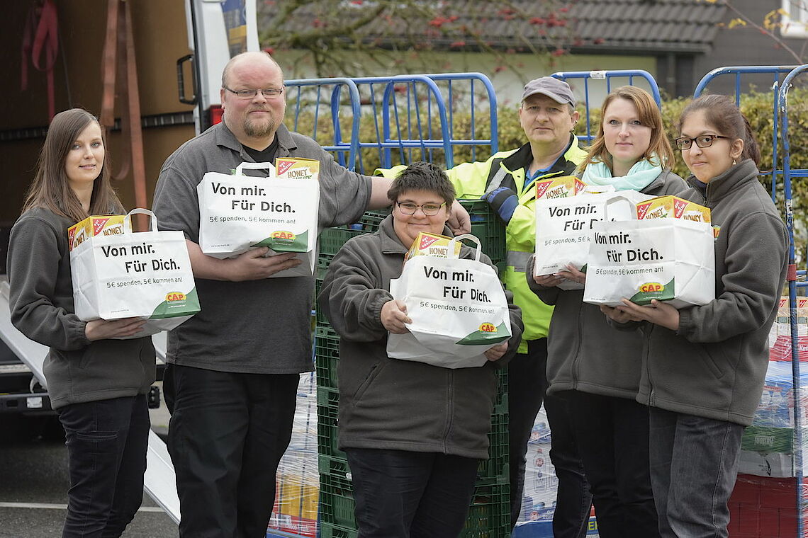 Es war zum wiederholten Male eine großartige Leistung, die unsere Kundinnen und Kunden während einer „Spendentütenaktion“ unseres CAP-Frischemarktes am Eckbusch gezeigt haben. 370 Spendentüten konnten in der Woche vom 4.-9. November erfolgreich „an den Mann/an die Frau“ gebracht werden und ermöglichten so – bei einem Tütenpreis von 5 € - eine Lebensmittelspende an den Mittagstisch der Alte Feuerwache in Höhe von 1.850 €. Grandios!