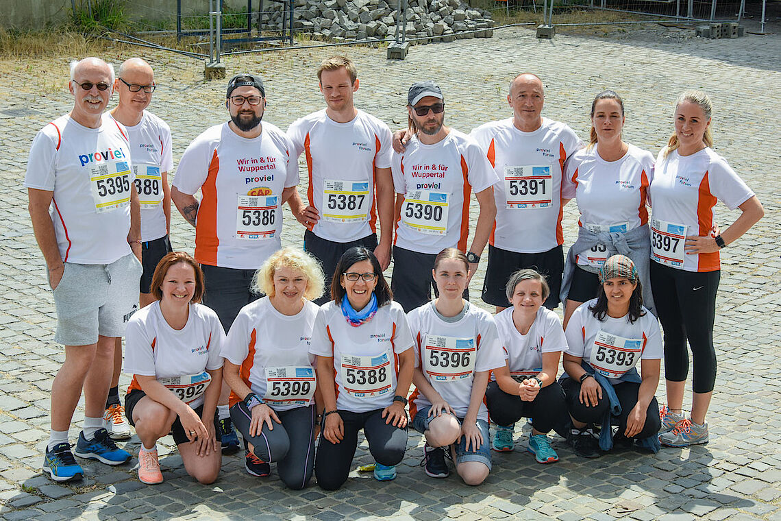Mit Freude haben sich die 14 Starterinnen und Starter von proviel/forum im Hauptevent des Tages, dem „Firmenlauf“, jeweils mit einer guten eigenen Leistung unter die Heerscharen der Vertreter der Wuppertaler Firmen/Institutionen/Behörden gemischt. Ein tolles Gemeinschaftsgefühl mit viel freigesetzter Energie und positiven Emotionen.