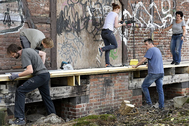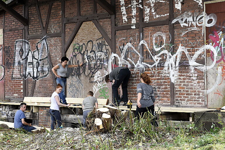 Mittlerweise gute Tradition hat der Projekttag von proviel und forum an dem wir einem anderen gemeinnützigen Träger unserer Stadt in „voller Mannschaftsstärke“ handwerklich unter die Arme greifen. Nach einem großen „Aufräum- und Renovierungstag“ auf der Kinder- und Jugendfarm in 2013, einem „wir-gestalten-das-Außengelände-neu-Tag“ im Kindergarten Klingelholl 2014 und einem „Aufräum-Renovierungstag“ in der Alten Feuerwache an der Gathe 2015, haben wir uns in diesem Jahr mit großer Freude dem Projekt Utopiastadt gewidmet.