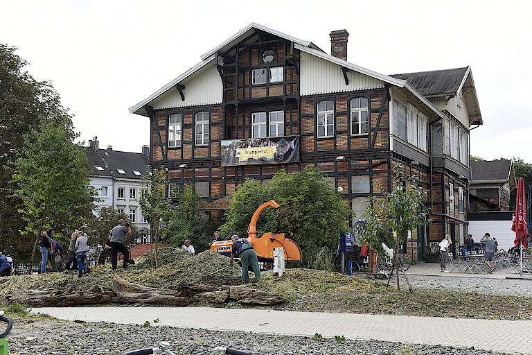 Rund 700 Arbeitsstunden konnten so an einem Arbeitstag in den Freischnitt der Zufahrt, die Reaktivierung der Treppe zur Mirker Straße und insbesondere den Freischnitt und die Entrümpelung der ehemaligen Gepäckabfertigung investiert werden. Ein toller Grundstein ist somit für die zukünftige „Utopia-Werkstatt“ gelegt.