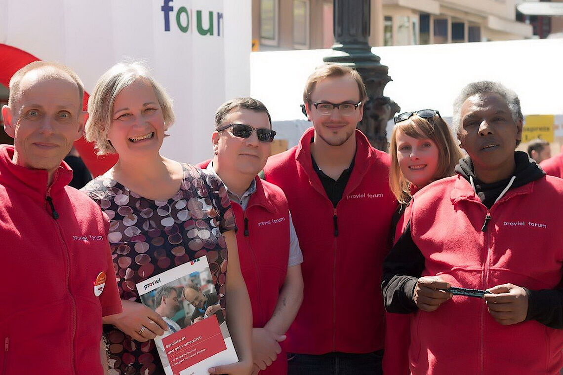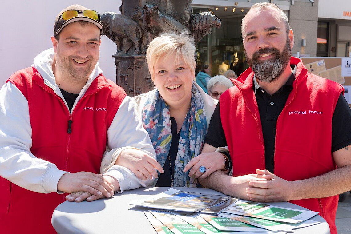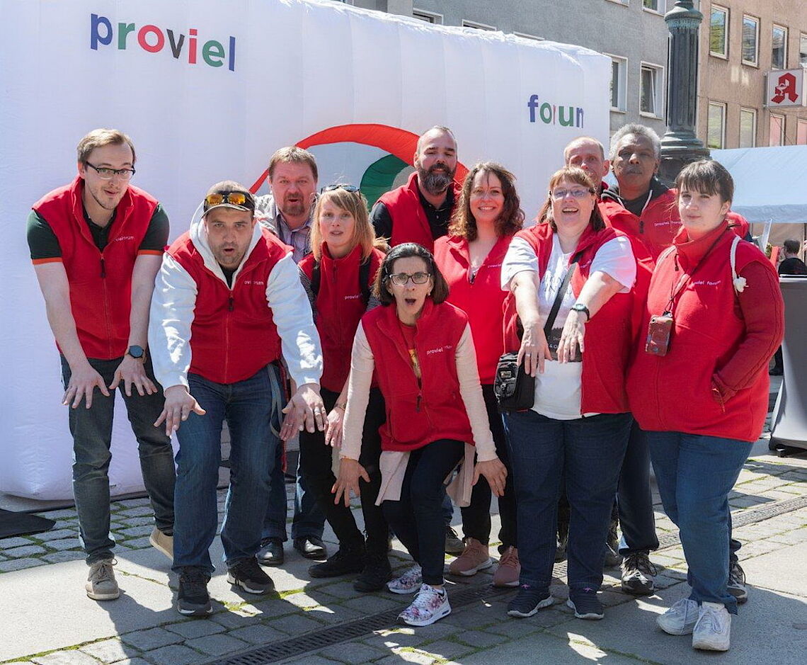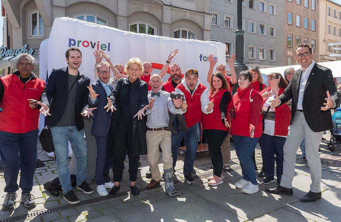 Berufliche Teilhabe, Spaß und Miteinander, Qualifizierung und Weiterbildung, sich ausprobieren, Betriebsintegrierte Arbeitsplätze, Lebensbegleitung, Stabilität, neue Chancen und Möglichkeiten, Abwechslung etc. - all dies waren Themen und Stichworte der Präsentation unserer starken proviel-Mannschaft auf dem diesjährigen Tag der Menschen mit Behinderung.Bei bestem Wetter und fröhlicher, engagierter Stimmung ein wirklich gelungenes Ergebnis.