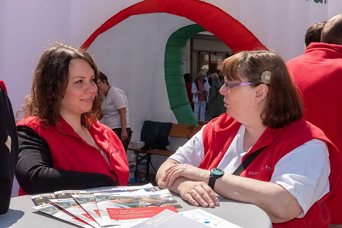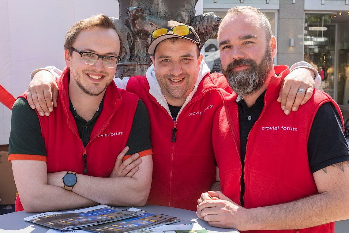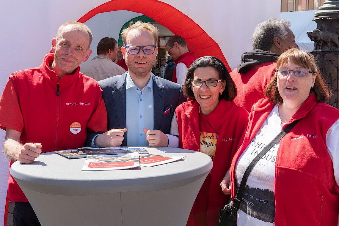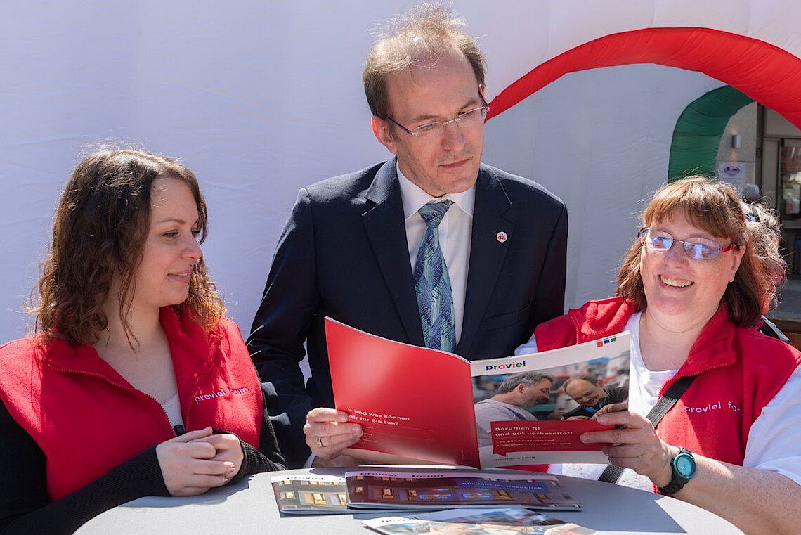 Berufliche Teilhabe, Spaß und Miteinander, Qualifizierung und Weiterbildung, sich ausprobieren, Betriebsintegrierte Arbeitsplätze, Lebensbegleitung, Stabilität, neue Chancen und Möglichkeiten, Abwechslung etc. - all dies waren Themen und Stichworte der Präsentation unserer starken proviel-Mannschaft auf dem diesjährigen Tag der Menschen mit Behinderung.Bei bestem Wetter und fröhlicher, engagierter Stimmung ein wirklich gelungenes Ergebnis.
