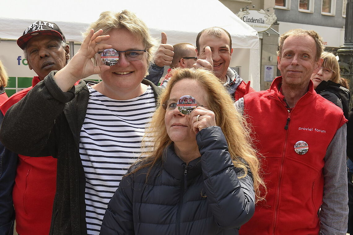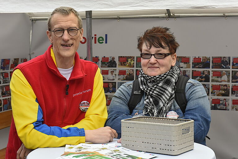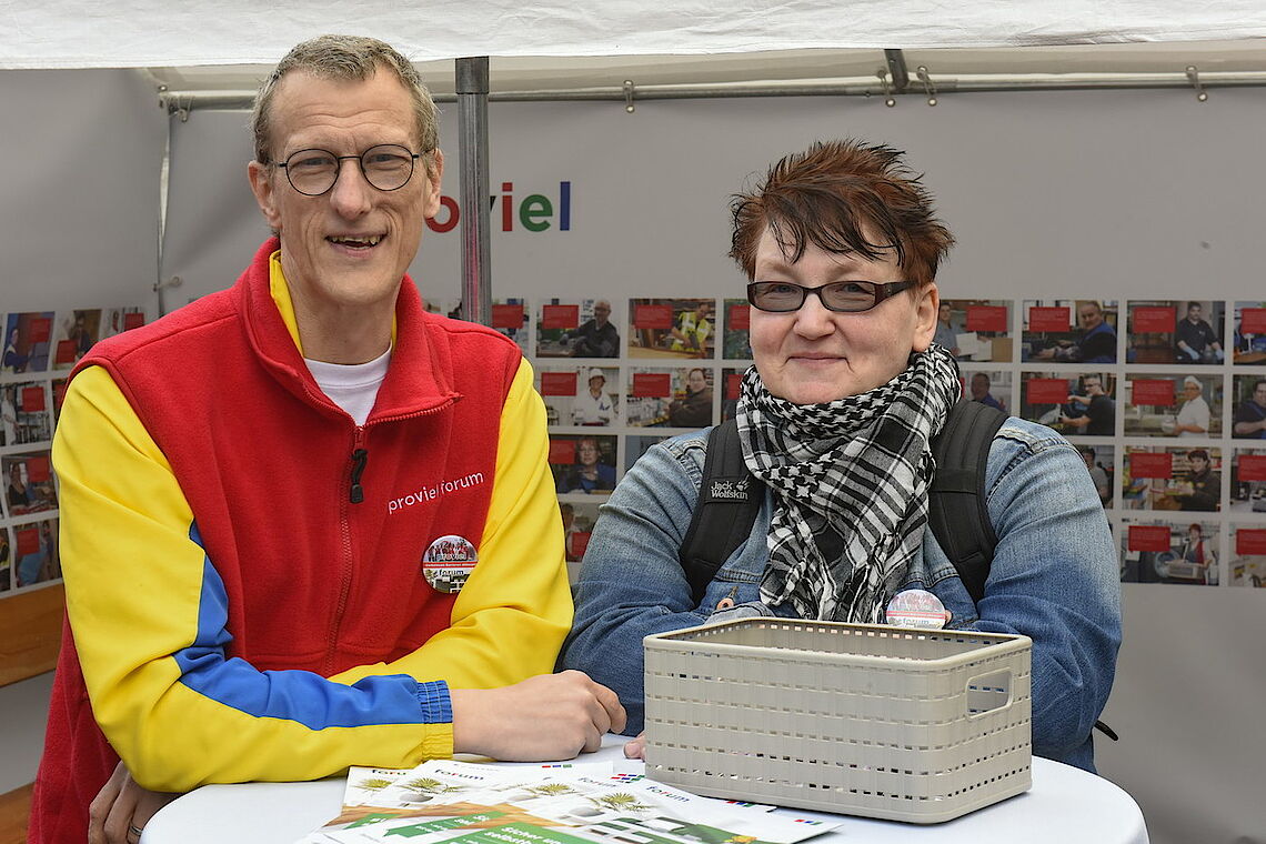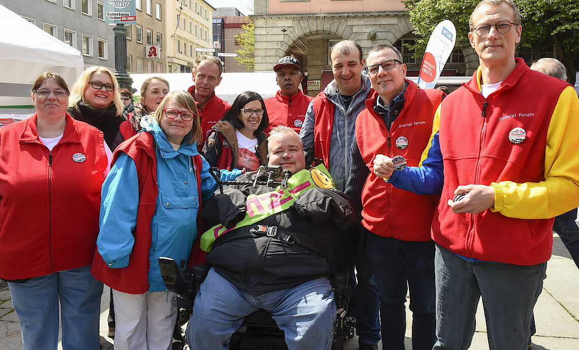 Gemeinsam Barrieren abbauen! ist das Motto des diesjährigen Tages der Menschen mit Behinderung und Motto unserer täglichen Arbeit. Berufliche Teilhabe, Spaß und Miteinander, Qualifizierung und Weiterbildung, sich ausprobieren, Betriebsintegrierte Arbeitsplätze, Lebensbegleitung, Stabilität, neue Chancen und Möglichkeiten, Abwechslung etc. - all dies waren Themen und Stichworte der Präsentation unserer starken proviel/forum-Mannschaft.