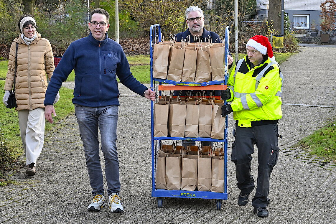 Die Mitarbeitenden aus dem Servicebüro von proviel haben die Nikolaustüten liebevoll mit dem Bild eines Weihnachtsmanns mit bunter Nase und Bommel an der Mütze gestaltet. Darin befinden sich ein großer Schoko-Nikolaus, Clementinen, Nüsse sowie Marzipan und Dominosteine. „Das Packen der Nikolaustüten macht richtig Spaß“, sind sich die CAP-Mitarbeitenden einig. Anna Margagliotti hat zum ersten Mal als Leiterin des CAP-Marktes die Nikolaus-Aktion organisiert und erzählt, dass alle voller Begeisterung beim Bestücken der Tüten mitgeholfen haben.