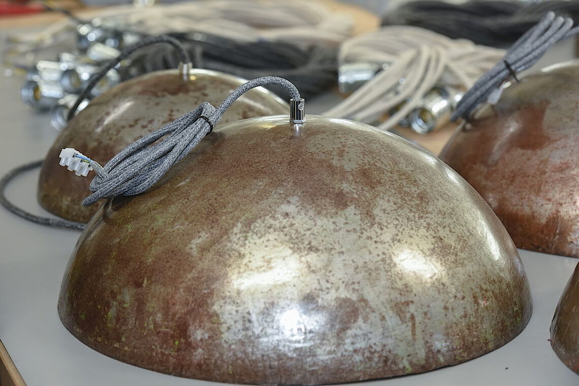 Die Idee zu den Lampenschirmen kam Selly Wane bei einer Reise in den Senegal: Dort war sie von den runden Formen beeindruckt, welche die Handwerker nur mit einem Hammer aus Blech herstellen. Auf einem Reifen hämmern sie alte Ölfässer so lange in Form, bis ein glattes, gleichmäßiges Halbrund entstanden ist. „Das Können wird über Generationen weitergegeben“, erzählt die Unternehmerin. Sie designte aus den Blechschalen gemütliche Leuchten. Die Farben der Ölfässer sind – mal intensiver, mal weniger – noch zu sehen. Da die Leuchten bei den Kunden sehr beliebt sind, suchte Selly Wane einen Kooperationspartner, der auch große Stückzahlen zuverlässig fertigt. Mit proviel ist sie sehr zufrieden: „Das ist eine schöne Zusammenarbeit – sehr flexibel und unkompliziert.“ Die gute Qualitätskontrolle sorgt dafür, dass die Kunden viele Jahre lang glücklich mit den Leuchten sind. Und die provieler hätten kein Problem damit, bei weiterhin kontinuierlich guter Verkaufsentwicklung 10.000 Stück im Jahr herzustellen.