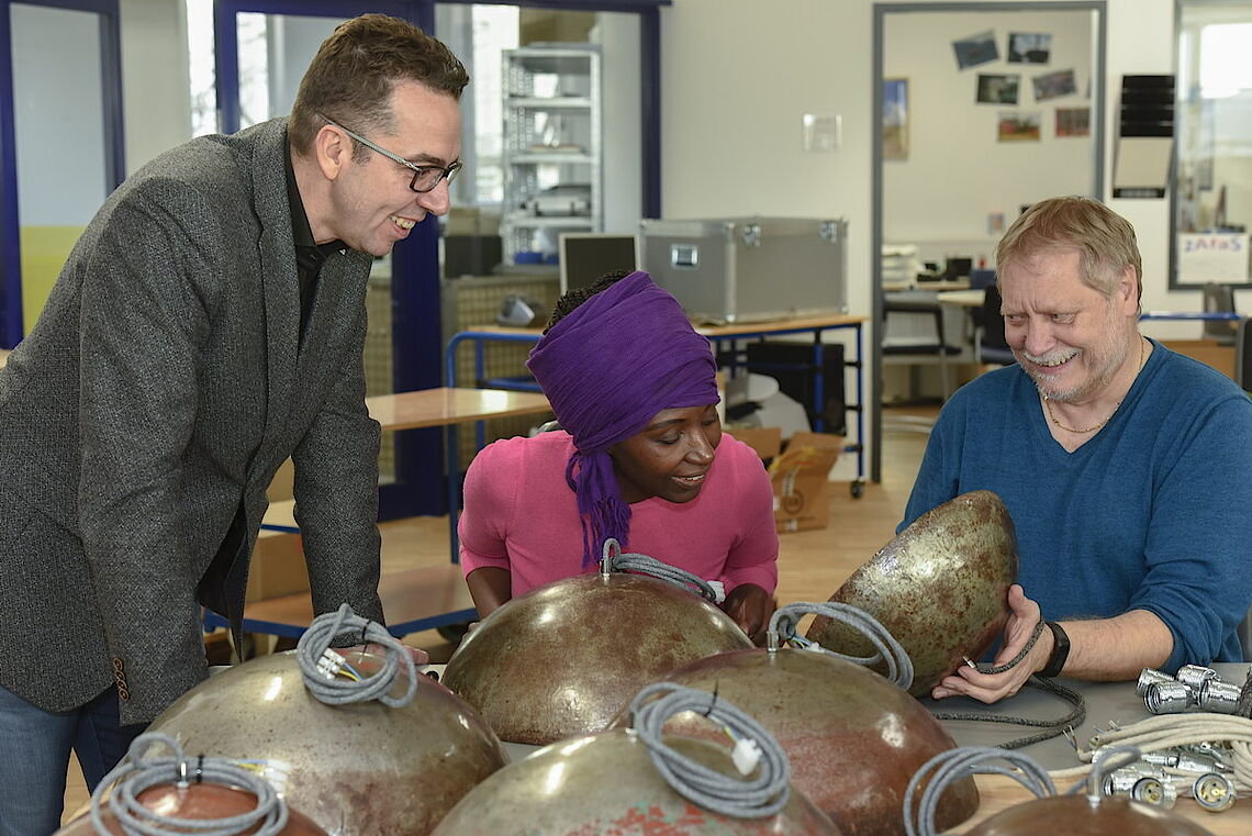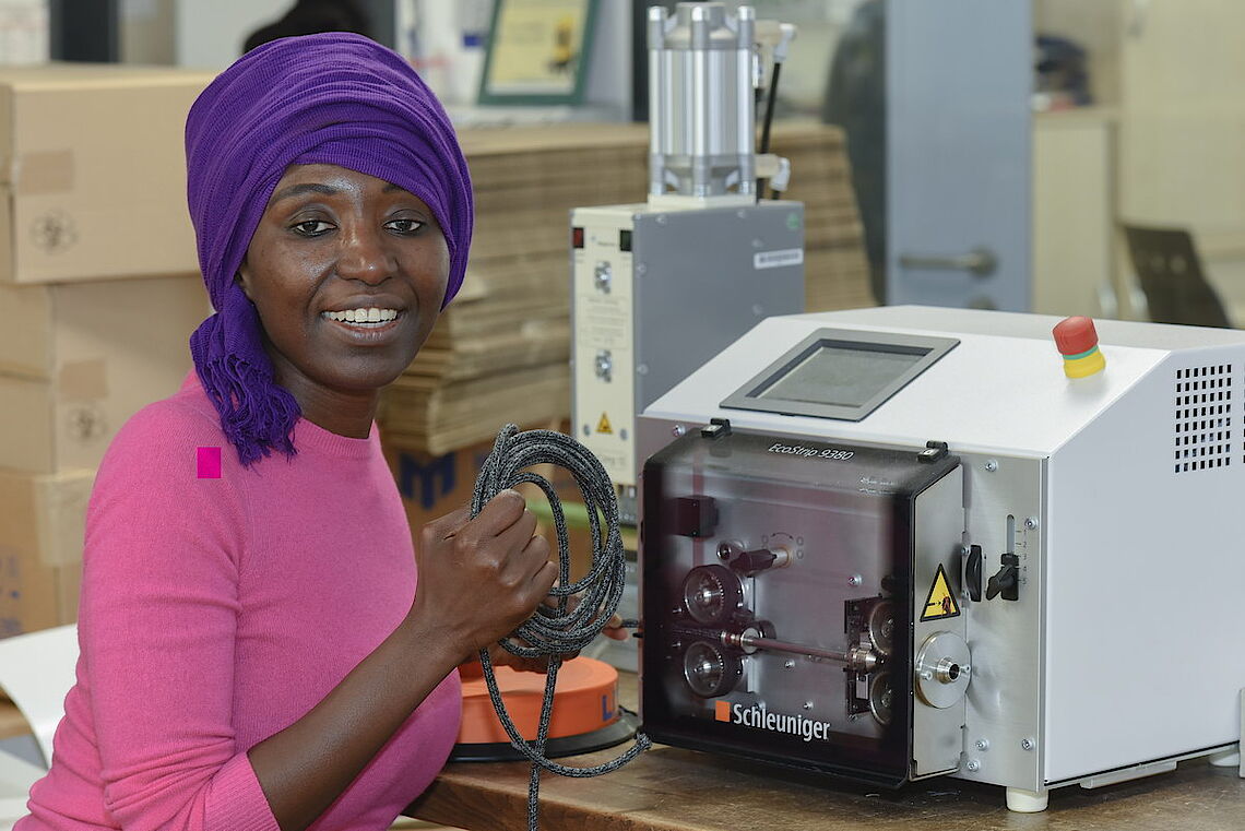 Selly Wane fliegt regelmäßig in den Senegal, um sich mit ihren Lieferanten abzustimmen und die Prozesses aktiv weiterzuentwickeln. „Ich bin im Senegal immer wieder mit dem Problem konfrontiert, dass es eine hohe Arbeitslosigkeit gibt und keine geregelte Abfallentsorgung“, erklärt Selly Wane ihren Ausgangspunkt. Mit ihrer Fertigung mindert sie beide Aspekte. Sie arbeitet mit festen Partnern zusammen, die dadurch mit einem geregelten Einkommen rechnen können. „Der Mann, der die Lampenschirme herstellt, lebt bisher bei seinen Eltern. Jetzt baut er sein eigenes Haus und hat eine Familie gegründet“, freut sich die Wuppertalerin. Oft beschäftigen ihre Handwerker auch ungelernte Helfer, meist aus den ärmsten Schichten der Bevölkerung. So haben die Produkte von SWANE-Design gleich einen doppelten sozialen Aspekt: Sie geben Menschen in Afrika und Wuppertal Arbeit.