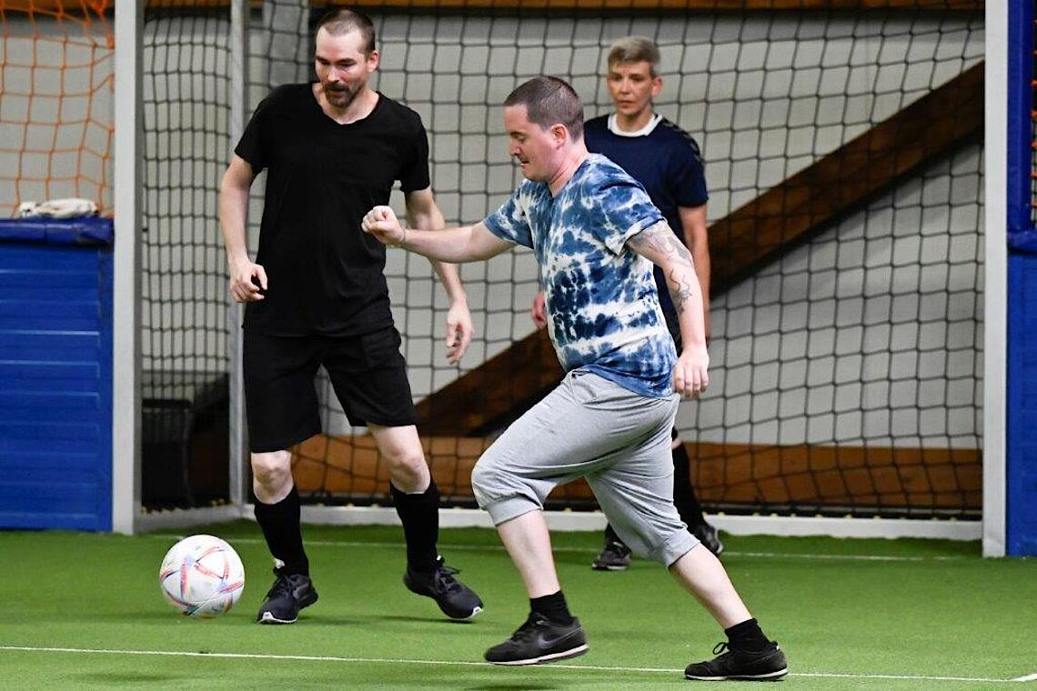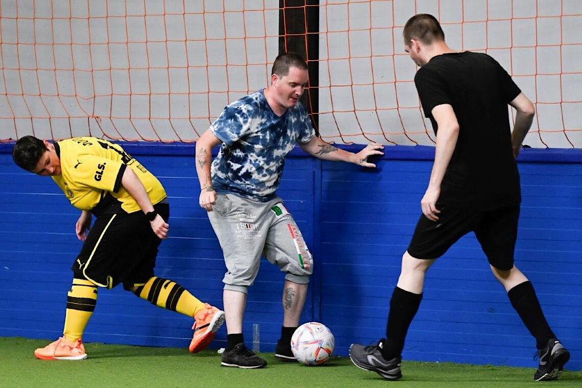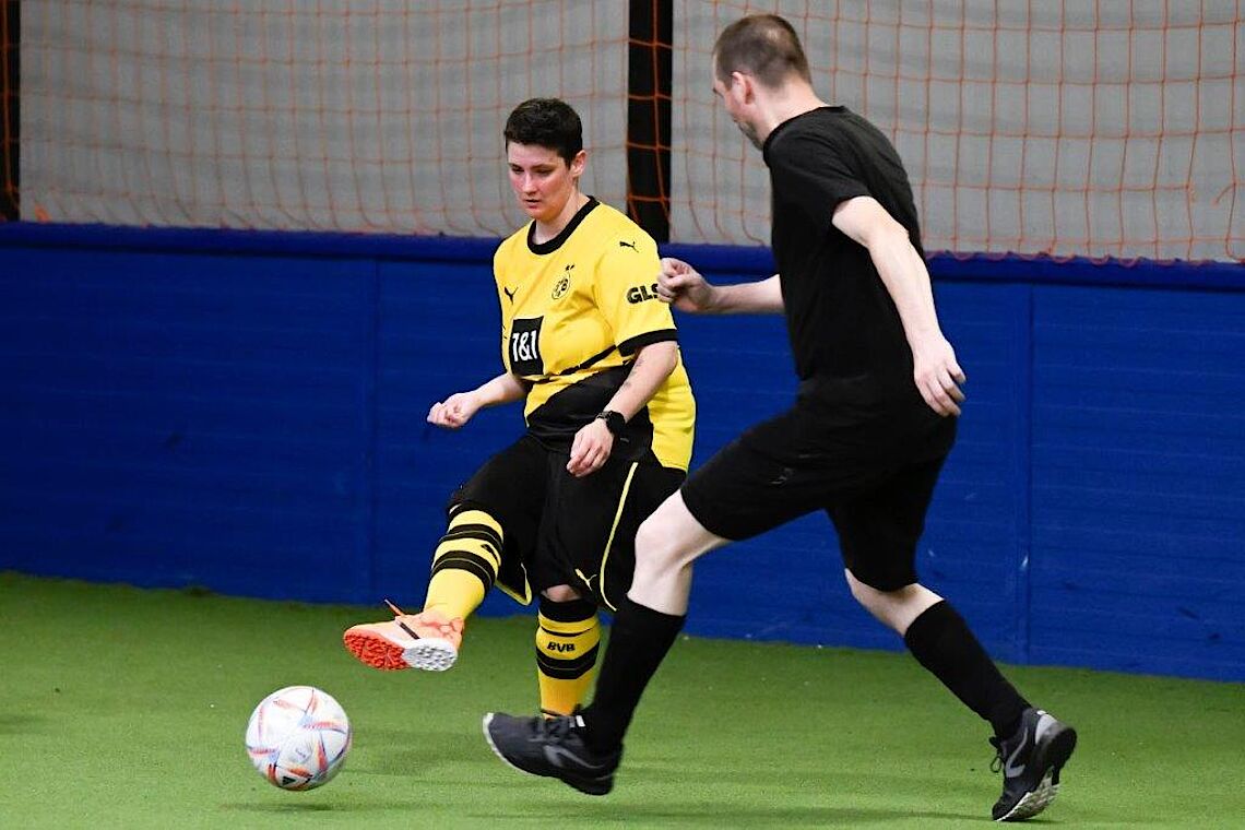 Dabei sind Erfahrung oder besondere körperliche Fähigkeiten nicht nötig für das Fußballspielen. „Jeder, der Spaß an Bewegung hat, ist willkommen“, betont Spielleiter Eric Fentrohs. Er hat in seiner Jugend selbst Fußball gespielt und leitet nun mit verschiedenen Kollegen das Training. Es findet in einer klimatisierten und gut erreichbaren Sporthalle am Eskesberg statt. Michelle Pape pflichtet dem Trainer bei: „Ich kann nicht gut Tore schießen, aber das ist völlig egal. Hier spielen wir just for fun und sind ein tolles Team.“