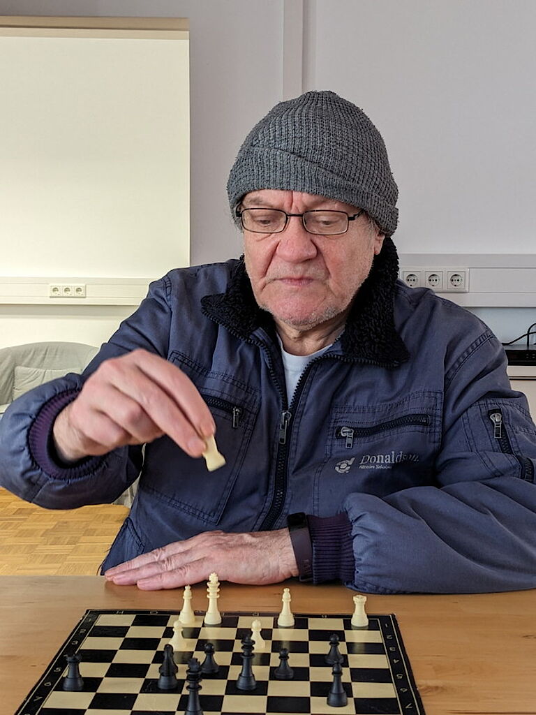 Die Spielerunde dienstags im BeWo-Treff an der Zeughausstraße ist ein wichtiger Lebensmittelpunkt für Markus Karl Biedermann – insbesondere, seit er in Rente gegangen ist und nicht mehr jeden Tag bei proviel arbeitet. „Es ist armselig ohne Arbeit“, findet er. Umso mehr freut er sich auf die Dienstage. In der Spielerunde hat er das Kartenspiel Wizard gelernt. „Ich war sogar schon bei der deutschen Meisterschaft für Wizard“, erzählt der 66-Jährige stolz. Auch Schach spielt er gerne und ist froh, dass er beim BeWo gegen richtige Menschen antreten kann und nicht wie zu Hause gegen den Schachcomputer.