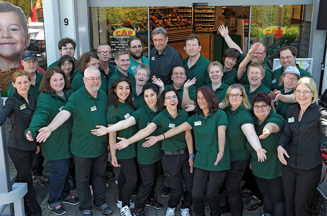 „Im CAP Markt habe ich mich von Beginn an wohl gefühlt. Ich komme jeden Tag mit einem guten Gefühl zur Arbeit, was früher nicht immer der Fall war. Seit ich im CAP Markt arbeite, habe ich zu meinen Kollegen eine viel bessere Beziehung. In der Bildungswerkstatt war ich oft alleine und habe mich nicht getraut, an Gesprächen teilzunehmen. Mittlerweile rede und lache ich viel mit meinen Kollegen. Auch mit den Anleitern arbeite ich gerne zusammen. Wann immer ich Fragen und Probleme habe, mir wird geholfen. Seit dem ich im CAP Markt arbeite, bin ich nicht mehr ganz so zurückhaltend wie vorher. Auch mit den Kunden komme ich einfacher ins Gespräch. Mittlerweile arbeite ich schon fast in allen Bereichen. Am liebsten aber sitze ich an der Kasse. Alles in allem bin ich glücklich hier zu sein.“Patricia Aznar-Pickartz – Mitarbeiterin„Ich habe zwar meine Ausbildung zur Kauffrau für Einzelhandel in früherer Zeit abgeschlossen, ich habe aber nie so viel Neues kennengelernt wie im CAP-Markt. Ich bin selbständiger geworden. Ich sehe die erforderliche Arbeit. Für mich bedeutet der CAP-Markt, dass ich mich weiterentwickeln darf. Ich fühle mich sehr wohl. Durch die Arbeit im Markt bin ich zufrieden, weil ich fast am 1. Arbeitsmarkt andocke, allerdings unter Werkstattbedingungen ohne Angst den Arbeitsplatz zu verlieren. Hier darf ich so sein, wie ich bin. Ich habe verantwortliche Fachkräfte, die man auch jederzeit ansprechen kann. Wenn man Fragen hat oder was besprechen möchte, nehmen sie sich auch viel Zeit für mich.“Jessica Behlert – Mitarbeiterin„Der Cap-Markt ist für mich eine Möglichkeit fehlende Identität auszubilden, obwohl mir Identifikation bei vorhandenen Schmerzen schwer fällt. Das heißt das Flowgefühl ist für mich bei einer relativ intensiven Arbeit hier immer noch möglich. Die Arbeit hier gibt mir die Möglichkeit, meine Grenzen nach oben zu verschieben und natürlich verbessert sich hierdurch meine finanzielle Situation. Der CAP-Markt gibt mir zusätzlich die Möglichkeit zu einem brauchbaren Austausch mit Kollegen. Außerdem fühle ich mich durch die Gespräche mit den Kunden sehr wohl; ich merke, dass ich hier, so wie ich bin, ankomme. Stolz bin ich, dass ich mich durch die Arbeit an der Kasse aktivieren kann, auch wenn ich z.B. Schmerzen im Fuß habe oder/und mich im Kopf nicht richtig wach fühle.“Dirk Böer – Mitarbeiter„Für mich ist der CAP-Markt mein Traumjob. Ich bin gelernte Verkäuferin und habe durch den CAP-Markt die Möglichkeit meinen Traumjob weiter zuführen. Die Arbeit im CAP-Markt bedeutet für mich selbständig zu sein und abends das Gefühl zu haben, etwas Sinnvolles getan zu haben. Außerdem habe ich durch die Kunden Kontakt zu anderen Menschen außerhalb der Werkstatt. Wohl fühle ich mich hier, weil ich meinem Traumjob nachgehen kann und mich unter den Kunden & Kollegen wohl fühle. Hier fühle ich mich von den Fachkräften & vom Personal ernst genommen, weil ich selbständig arbeiten kann. Ich bin stolz auf das, was ich tue – also stolz auf die Arbeit, die ich leiste. Ich habe hier meine Selbständigkeit wiedergefunden.“Christina Braig – Mitarbeiterin„Der CAP-Markt bedeutet mir viel, weil ich dort meinen Arbeitsvertrag habe. Die Arbeit hier macht Spaß, besonders die Arbeit mit den Kollegen und Vorgesetzten. Hier fühle ich mich gut, auch weil hier meine Arbeit ist. Viele Arbeiten die im CAP-Markt gebraucht werden habe ich dort gelernt und das mach mich stolz und glücklich.“Assunta Corvelli – Mitarbeiterin„Ich bin froh und glücklich, im CAP-Markt zu arbeiten. Am Anfang war ich unsicher, weil ich nicht wusste, was zu tun ist und ich keine Ahnung hatte. Es war super, dass sich das Team vom CAP-Markt vor der Eröffnung kennengelernt hat. Wir verstehen uns alle gut. Das Verhältnis zum Kunden ist persönlich und herzlich. Von einigen kenne ich die Namen und sie kennen meinen. Die Kunden sind dankbar, weil wir die Waren auch nach Hause bringen. Der CAP-Markt ist klein, aber er bietet ein breites Angebot! Das sagen die Kunden. Es gibt alles! Ich mache nun fast alle Arbeiten, die täglich anfallen. Ich benötige noch Hilfe, aber nicht wie am Anfang. Ich wünsche mir für die Zukunft, dass der CAP-Markt weiterhin ein Teil des Eckbuschs ist und wir so erfolgreich bleiben.“Angela Garcia – Mitarbeiterin„Im Grunde ist der CAP-Markt für mich besser als die Werkstatt. Ich habe das Gefühl, dass es näher am allgemeinen Arbeitsmarkt ist. Ich habe dadurch auch das Gefühl, dass ich es so eher auf den allgemeinen Arbeitsmarkt schaffen könnte. Hier erprobe ich z.B. an der Kasse etwas Stress und natürlich ist es für mich hier eine richtige Aufgabe. Ich kann mich hier viel mehr mit der Arbeit identifizieren. Ich habe mehrere Aufgabenbereiche und viel Abwechslung. Nach etwas Einspielung komme ich inzwischen auch richtig gut mit den Kollegen klar. Wir mussten etwas Teamarbeit betreiben und tun es immer noch. Wir sind ein rücksichtsvolles Team in dem gegenseitig Macken toleriert werden.“Stefan Hellwinkel – Mitarbeiter„CAP-Markt ist mein Leben – im Moment schon, es war das Beste, was ich machen konnte. Die Arbeit macht mir Spaß, sie ist abwechslungsreicher wie in der Werkstatt. Im CAP-Markt kann ich mich gut ablenken, ich fahre so gerne hier hin. Ich habe schon viel gelernt, z.B. abgelaufene Lebensmittel abzuschreiben, Ware mit Schildern zu bestücken und meine Konzentration ist besser als vorher. Ich bin auf mich selber stolz, weil ich auch hierhin komme, wenn es mir nicht gut geht – und das ist ein riesiger Pluspunkt für den CAP-Markt.“Lisa Holdorf – Mitarbeiterin„Der CAP-Markt ist mein zweites Zuhause. Ich bin froh, hier zu sein und so nette Kundschaft zu haben. Die Arbeit hier bedeutet für mich neue Perspektiven und steigert mein Selbstwertgefühl. Ich fühle mich hier wegen der netten Kollegen, der netten Chefin und dem netten Personal wohl. Das Alleine-Arbeiten, meine Arbeitsschritte selbständig zu e