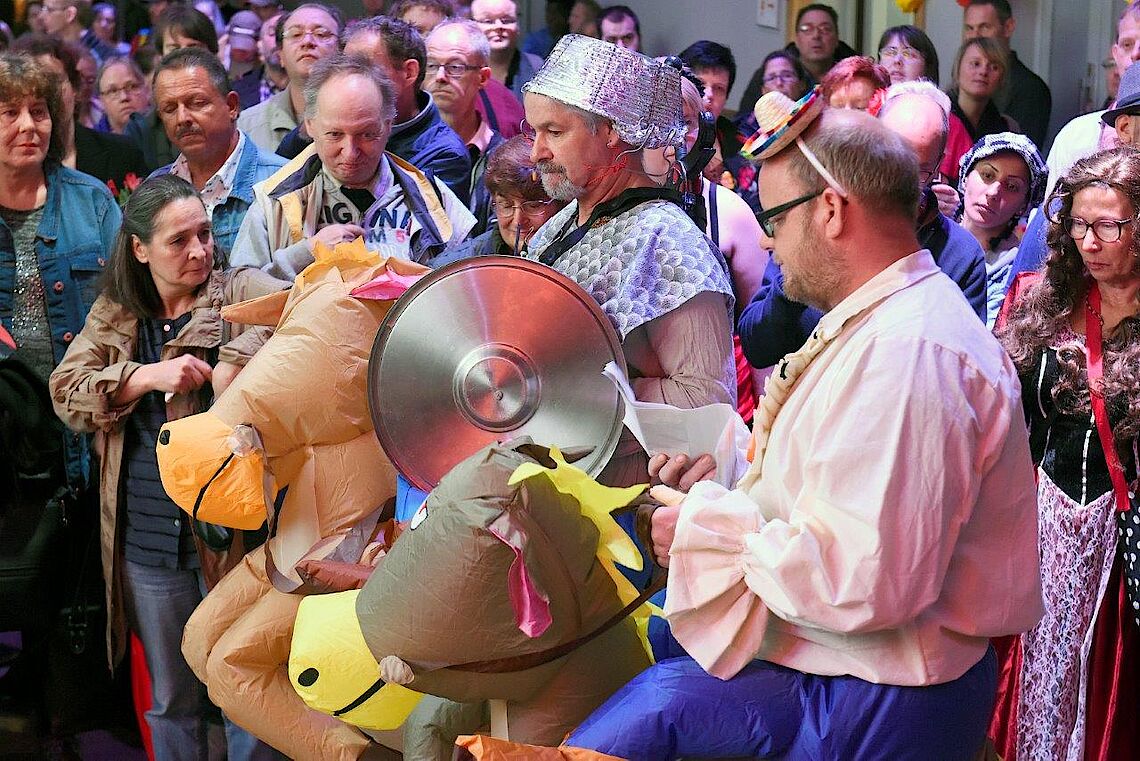 Was kann uns der Regen schon anhaben, wenn die Laune stimmt, die Kollegen eine bärenstarke Aufführung von Don Quijote auf das Parkett zaubern, das Mittagsbüffet der VillaMedia keine Wünsche offen lässt, unser Eismann den Nachtisch zaubert und anschließen Deejay Plus 2 Stunden den Tanzsaal zum Glühen bringt.