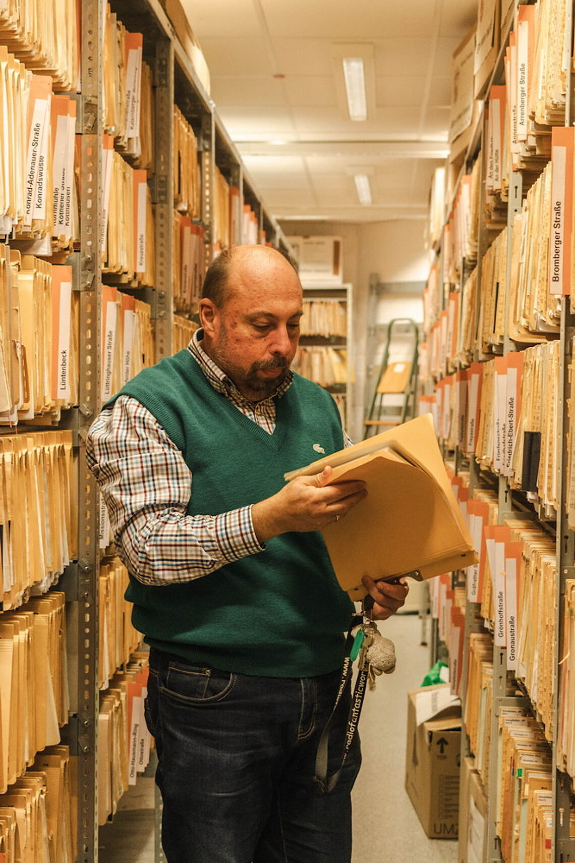 Vorher hatte er schon einige Jahre auf einem Betriebsintegrierten Arbeitsplatz (BiAp) von proviel im Amt für Denkmalschutz gearbeitet. Zwischen den Akten fühlt sich Michael Flinta, der in der Ukraine Planwirtschaft studiert hat, wohl. Er prüft bei eingehenden Akten, ob alle notwendigen Dokumente vorhanden sind, vergibt Aktenzeichen, und kontrolliert am Ende des Prozesses, ob die eingereichten Rechnungen auch abgerechnet werden dürfen. Immer mehr Fristen, Bestimmungen und Regeln zum Denkmalschutz lernte er in diesem Amt mit der Zeit. Er findet sich im staubigen Archiv zurecht und kann Anrufern oft weiterhelfen. Trotzdem blieb es ein langer Kampf, bis der BiAp in eine Festanstellung umgewandelt wurde.