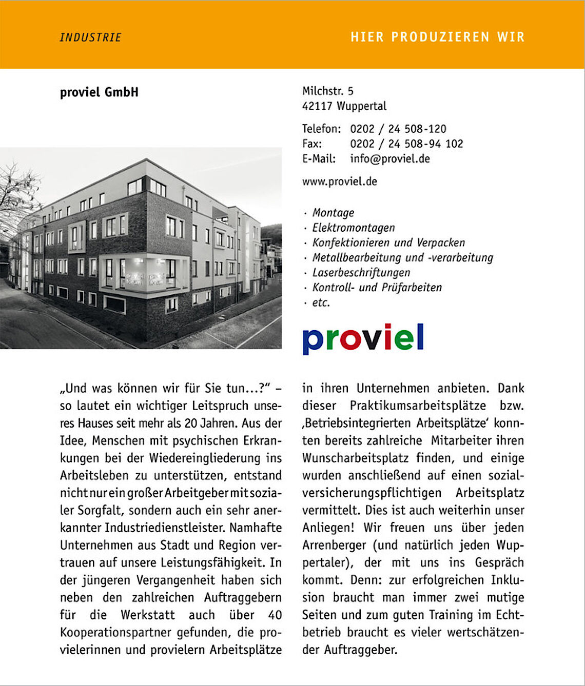 In der jüngeren Vergangenheit haben sich neben den zahlreichen Auftraggebern für die Werkstatt auch über 40 Kooperationspartner gefunden, die provielerinnen und provielern Arbeitsplätze in ihren Unternehmen anbieten. Dank dieser Praktikumsarbeitsplätze bzw. ‚Betriebsintegrierten Arbeitsplätze‘ konnten bereits zahlreiche Mitarbeiter ihren Wunscharbeitsplatz finden, und einige wurden anschließend auf einen sozialversicherungspflichtigen Arbeitsplatz vermittelt. Dies ist auch weiterhin unser Anliegen!