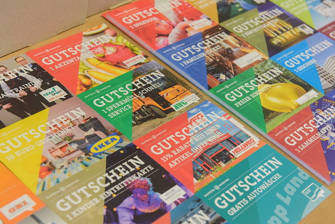 „Es ist gelungen, eine auch optisch ansprechende Begrüßung der zugezogenen Neubürger zu erreichen“, so Martin Bang, Geschäftsführer der Wuppertal Marketing GmbH. „Insbesondere das große Engagement von Wuppertaler Unternehmen, welche die Mappe mit attraktiven Gutscheinen bestücken, schafft einen echten Mehrwert.“ Mehr als 100 Euro lassen sich sparen, wenn man die der Mappe beiliegenden Gutscheine konsequent einlöst. Freie Eintritte, Einkaufsrabatte, kleine Geschenke und Ermäßigungen wecken das Interesse. Zudem findet sich für jeden die eine oder andere Inspiration zur Freizeitgestaltung. Die Resonanz kann sich sehen lassen: Bis zu 60 Prozent der Gutscheine werden eingelöst.