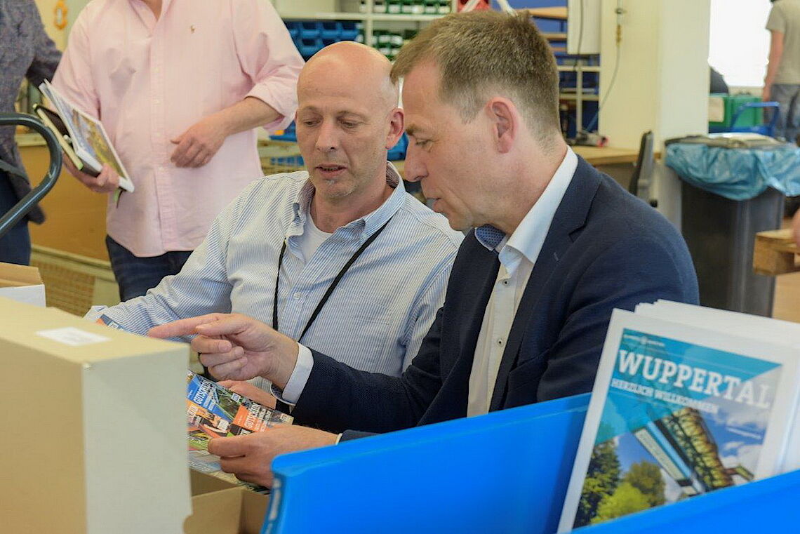 „Für proviel und unser Team ist diese Tätigkeit eine erfüllende Aufgabe“, erläutert Christoph Nieder, proviel-Geschäftsführer. „Den beteiligten Mitarbeiterinnen und Mitarbeitern sieht man den Spaß an der Tätigkeit an, denn das identitätsstiftende Produkt Neubürgermappe besitzt eine besondere Faszination.“ Über die Jahre wurden auf diese Art und Weise bereits mehr als 50.000 Mappen befüllt und auf den Weg zu den Neu-Wuppertalern gebracht. Herzlich willkommen!