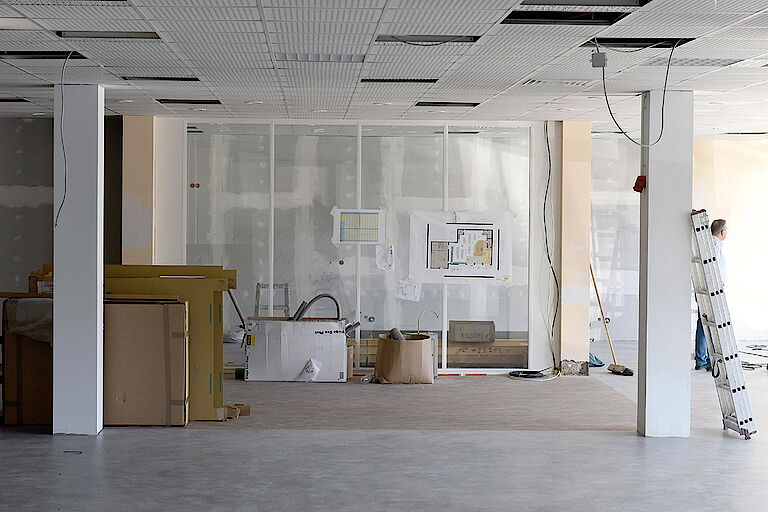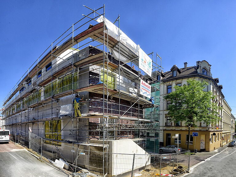 Die Fassadenstruktur ist mittlerweile klar erkennbar, im Innenausbau stehen alle (Raum)Aufteilungen und bei Heizungen, der Stromversorgung, der Be- und Entlüftung, den Treppenhäuser geht es gut voran – es tut sich gerade so einiges.