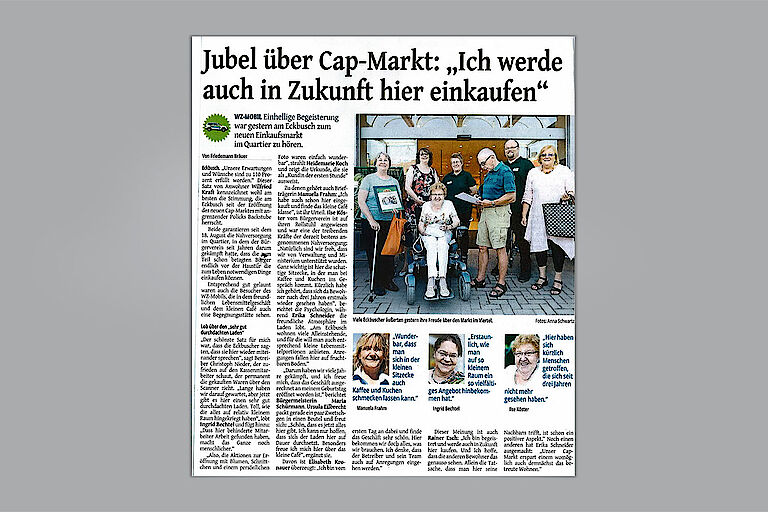 Mit „Lust auf etwas Neues“ startet nicht nur Marion Radtke als neue Marktleiterin in das Projekt CAP-Frischemarkt am Eckbusch (siehe angehängten Artikel aus der Westdeutschen Zeitung vom 12. Juli), sondern auch alle anderen Kolleginnen und Kollegen im CAP-Team der proviel GmbH.
