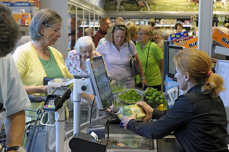 Mittwoch, 7. September, 8.17 Uhr, an Kasse 1 im CAP-Frischemarkt wird das erste Jubiläum gefeiert, der 10.000 Kunde seit der Eröffnung am 18. August wird begrüßt. 10.000 Kassenvorgänge zu Beginn von Tag 18 ergeben durchschnittlich einen Wert von rund 580 Kundinnen und Kunden vor Ort Am Ringelbusch 9. Eine Zahl mit der die Verantwortlichen nach so vielen Jahren Leerstand und veränderten Laufwegen vor Ort zufrieden sind.